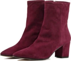 Lina Locchi Enkellaarsjes Dames / Laarzen / Damesschoenen – Suède – L1101 Sue – Bordeaux – Maat 42