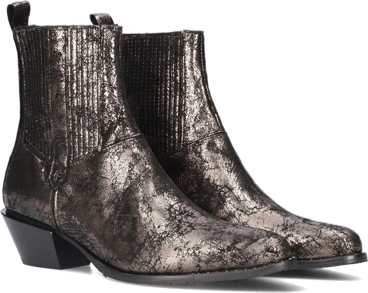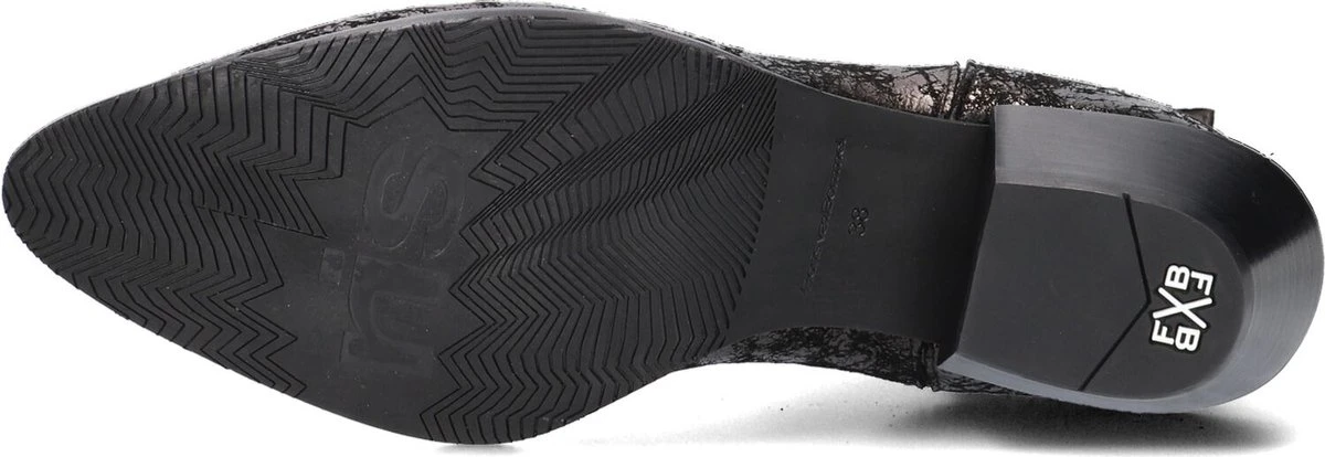 Deze zilverkleurige enkellaarsjes Sfw-50040 van het merk Floris Van Bommel geeft jouw outfit nét dat beetje extra. Dit model is uitgevoerd in hoogwaardig suède met een craquelé folie eroverheen voor een stoere finishing touch en beschikt over toffe citywestern accenten. Zo steekt de rand van de hak net iets uit, is de zoolrand rondom de spitse neus afgewerkt met metalen studs en is er op de zijkant een subtiel F-embleem te vinden. De laars is voorzien van elastiekpaneel die bijna rondom de gehele enkel zit, waardoor je ‘m gemakkelijk aan- en uittrekt en veel comfort ervaart bij iedere stap. Het binnenwerk heeft een vast, dempend voetbed en de voering is van gemaakt van zacht leer en textiel. De hakhoogte is 5 centimeter en de schachthoogte is 15,5 centimeter (gemeten bij maat 38). Door de western look combineer je deze laars supertrendy met een mini jurk of rok! Waar draag jij ‘m bij?