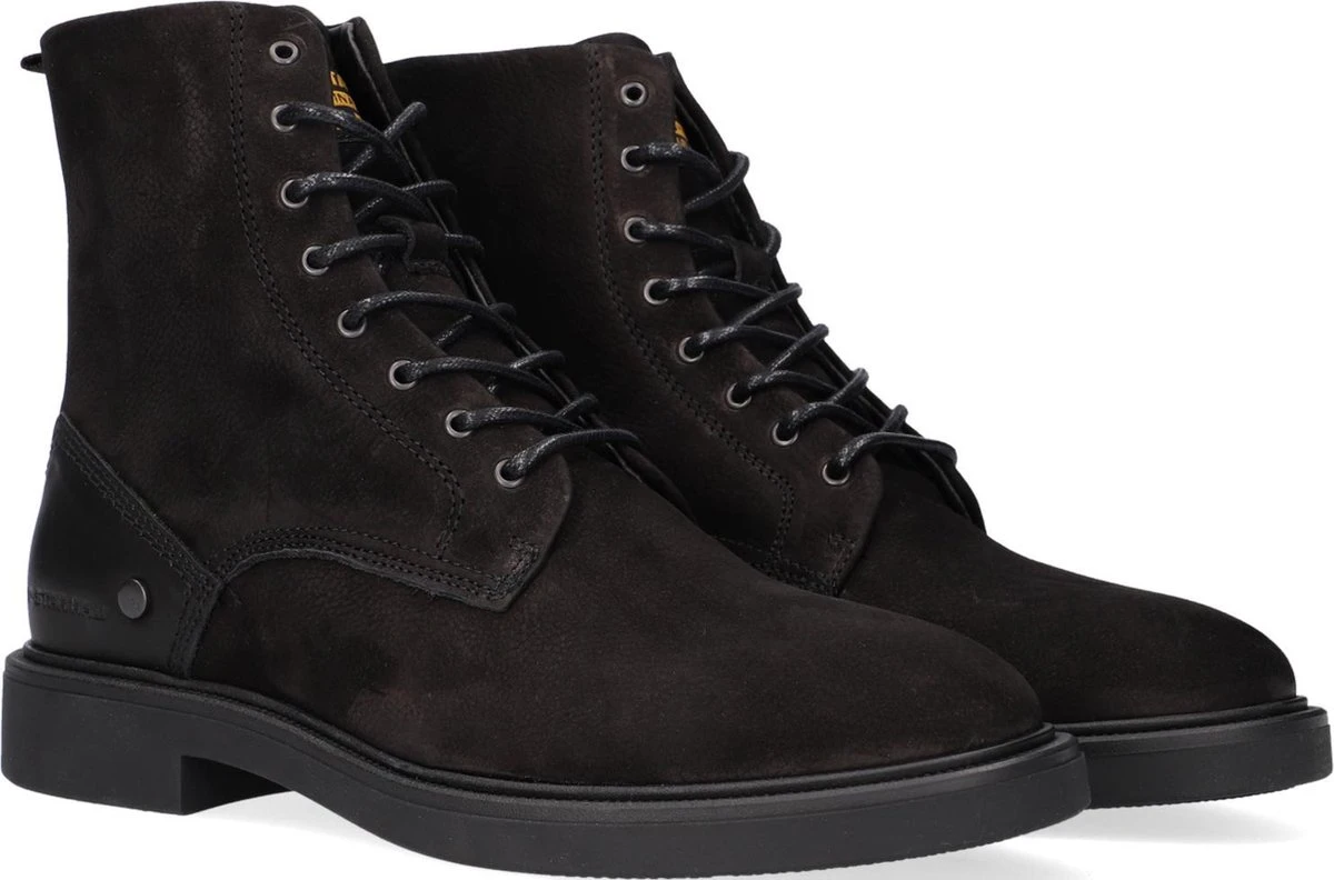 Deze zwarte veterboot Vacum II HGH TMB W met moderne look van het merk G-Star Raw is perfecte om chic voor de dag te komen. Dit stoere model is gemaakt van hoogwaardig nubuckleer en heeft opvallende accenten zoals de ronde gewaxte veters, de verstevigende hielcap van glad leer met merkreliëf, het textiele merklabel op de tong en een handige aantreklus achter op de schacht. De aansluitende schacht zorgt voor steun en warmte. Het leren binnenwerk zorgt samen met het uitneembare, dempende voetbed voor een hoog comfort en extra ondersteuning. De zoolrand is fraai afgewerkt met een kartelrandje voor een extra detail. De loopzool is van rubber met een stevig profiel voor veel grip op iedere ondergrond. De schacht heeft een hoogte van 15 centimeter, gemeten bij maat 38. Draag ze stoer met jouw lievelingsdenim!
