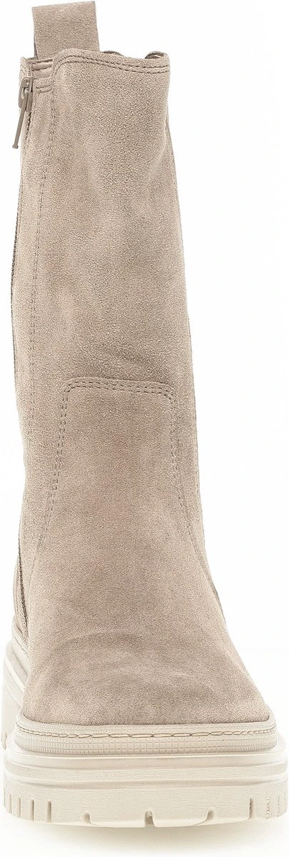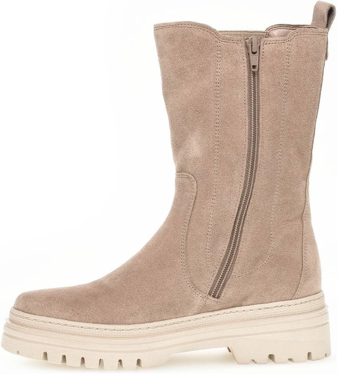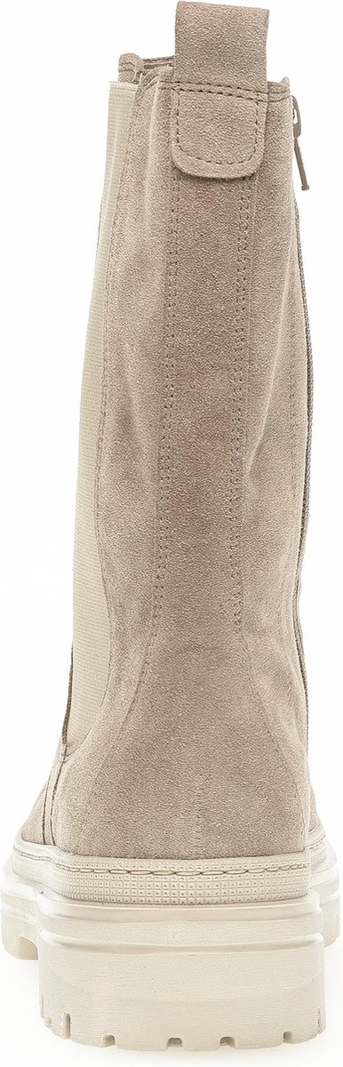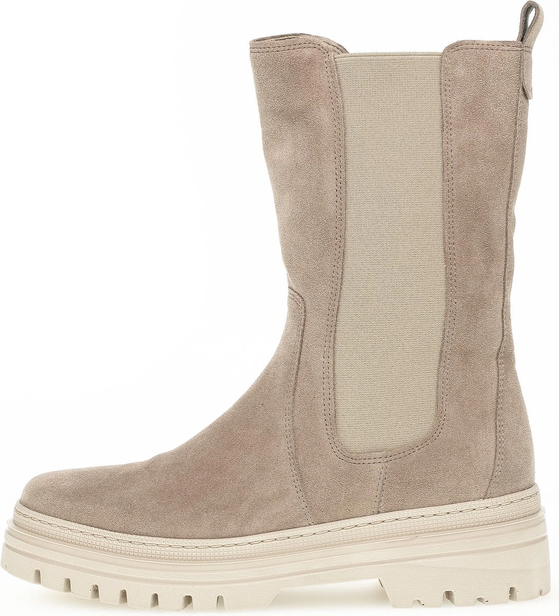 Een chelsea boot is een fijne aanwinst voor jouw schoenenkast! Zo ook dit comfortabele model uit de Best Fitting-collectie van het merk Gabor. Deze schoenen bieden voor iedere voet de noodzakelijke ruimte, omdat ze ruimer zijn bij de tenen, bal en wReef van de voet. Dit model 724.1 is gemaakt van beige suède en heeft een elastieken inzet aan de zijkant. Leuke details zijn de dubbele stiksels, het aantreklusje achterop de schacht en de dubbele zoolrand met reliëf en grof stiksel. Het binnenwerk is gemaakt van textiel dat superzacht aanvoelt en het uitneembare voetbed heeft een comfortabele demping. De chunky zool is onder de voorvoet 2,5 centimeter hoog en onder de hiel 4 centimeter. De schachthoogte is 24 centimeter (gemeten bij maat 38) en door de handige ritssluiting aan de zijkant schiet je de enkellaars snel aan. Een absolute musthave!