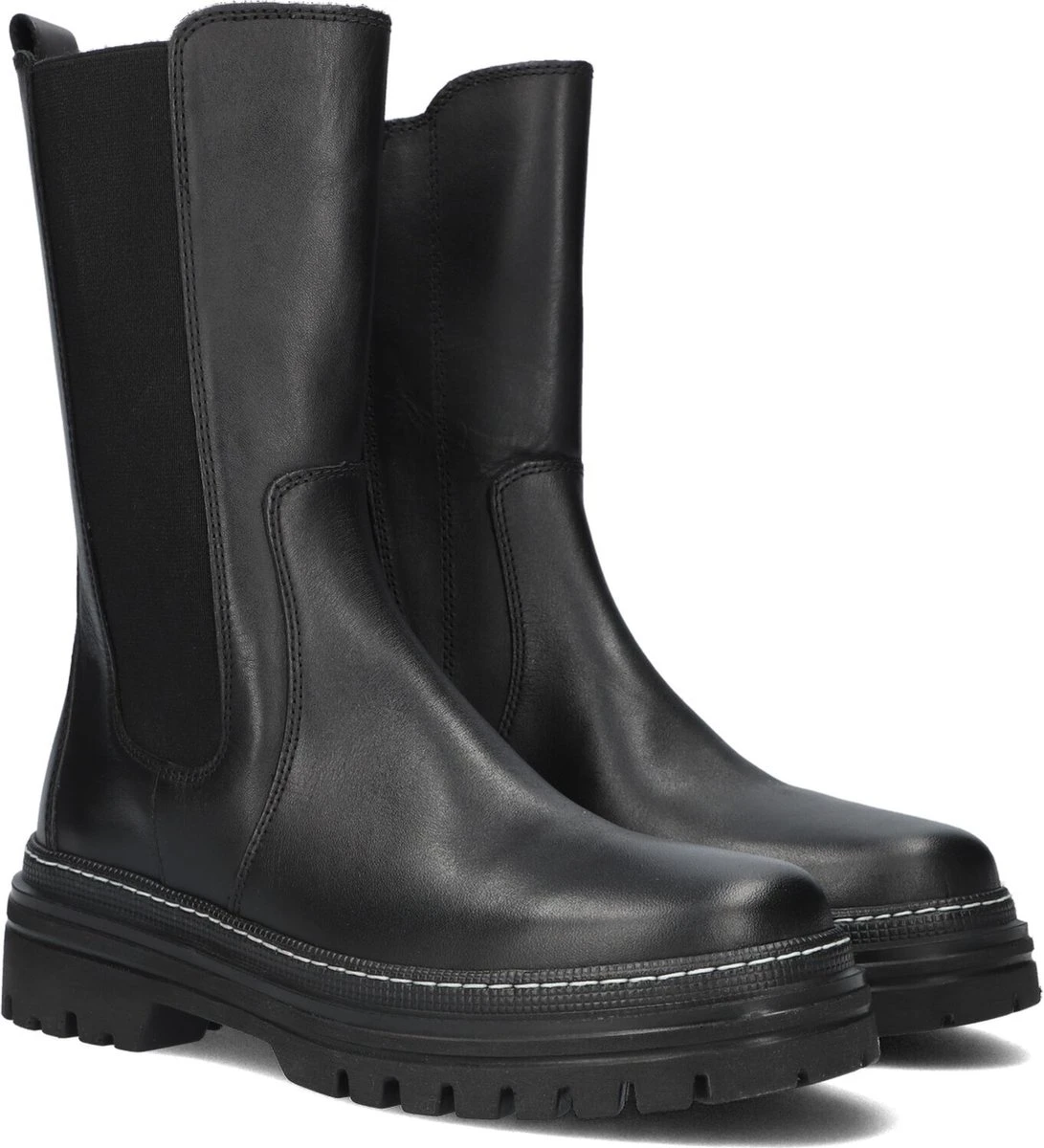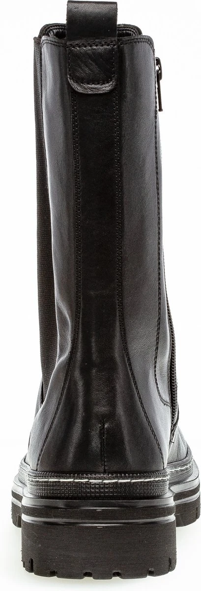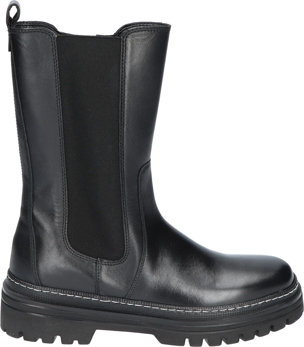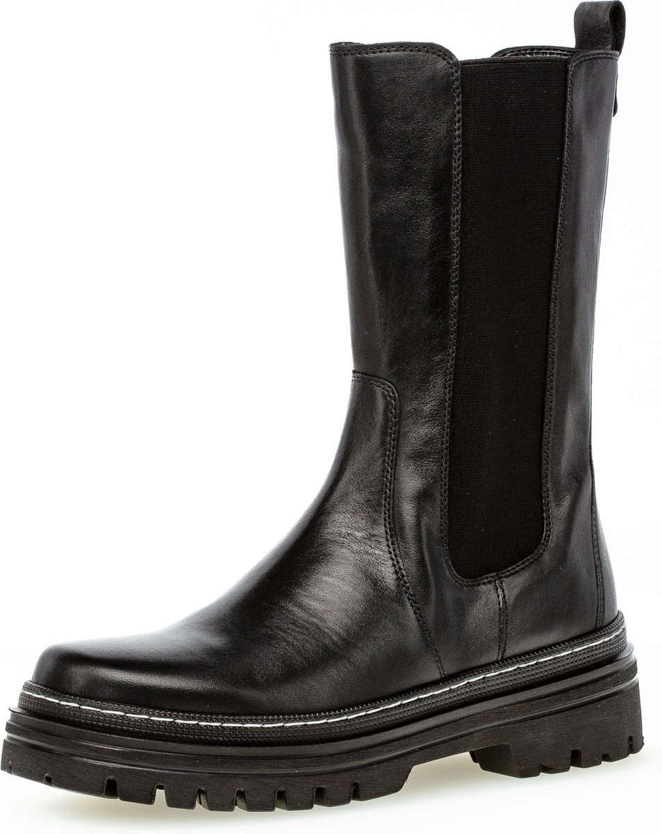 Hoge chelsea boots zijn het helemaal volgens de laatste mode trends en kunnen dus niet ontbreken in jouw schoenengarderobe! Ze zijn supermakkelijk te matchen met allerlei outfits en zitten ook nog eens heerlijk! Dit zwarte model 724 van het merk Gabor is uitgevoerd in zacht leer en heeft een comfortabel elastische paneel aan de zijkant voor een prettig loopcomfort. Opvallende details is de rits aan de binnenzijde van de laars, waarmee je ‘m eenvoudig aan-en uit trekt en de zoolrand die sierlijk afgewerkt is met een reliëf en een grof stiksel. Het binnenwerk heeft een voering van superzacht textiel met een uitneembaar voetbed. De rubberen zool met grof profiel is licht van gewicht en geeft de schoen een stoere look. De schachthoogte is 22 centimeter met een hakhoogte van 4 centimeter. Draag deze boots casual onder een jeans of match ze lekker stoer onder een rokje of jurkje.