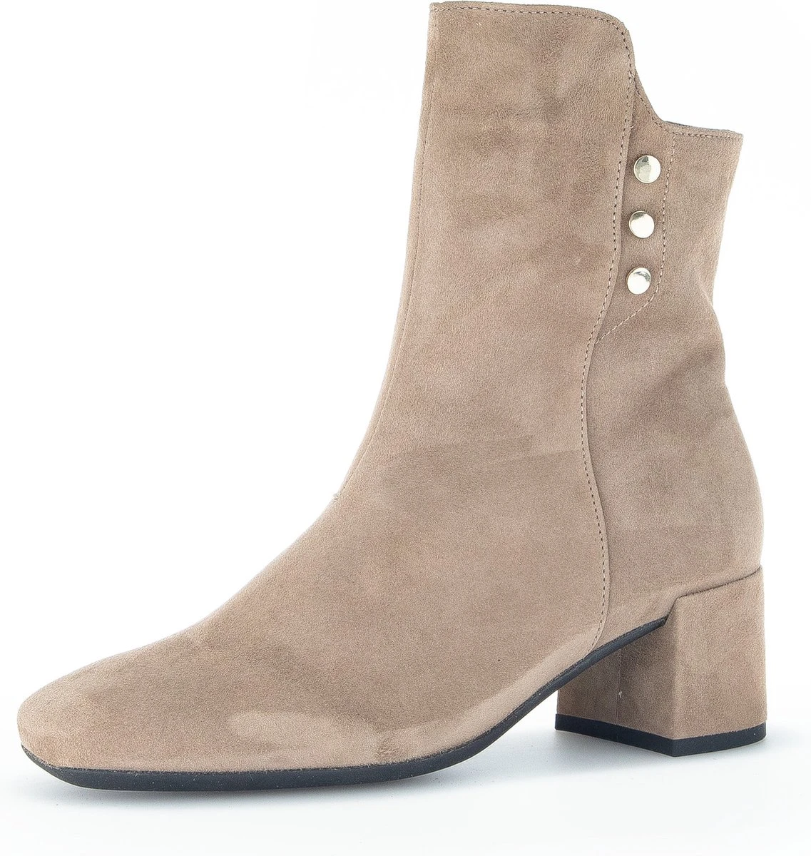 Beige Gabor enkellaarsjes in mooi velours. De ronde neus en de beklede hak zorgen samen voor een luxe afwerking. Combineer de laarsjes met jouw favoriete outfit. Dankzij de ritssluiting trek je ze makkelijk aan en weer uit. De extra wijdte maakt het bovendien een paar heel comfortabele beige Gabor enkellaarsjes.