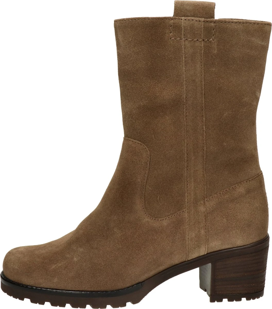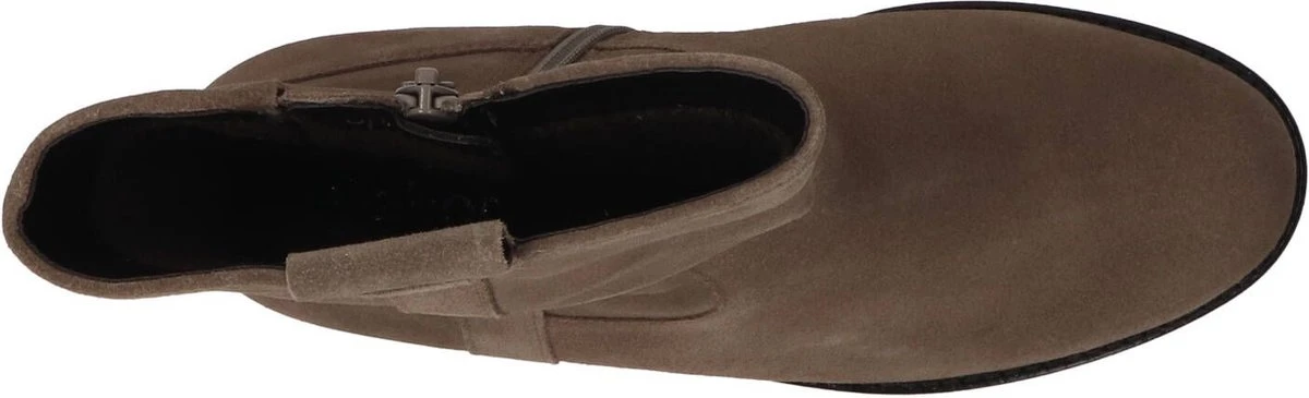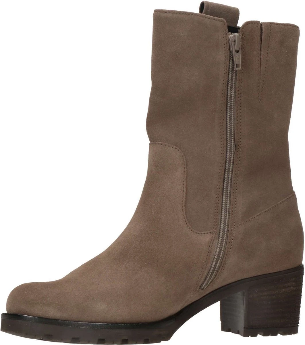 Suède enkellaars voor dames van het merk Gabor. Deze suède enkellaars met ronde neus is uitgevoerd in de kleur taupe. De binnenzijde van de schacht bevat een rits om het aan- en uittrekken te versoepelen. De binnenzijde is uitgevoerd in vacht en een stevig contrefort draagt bij aan het loopgemak. De rubberen loopzool heeft een grof profiel en de hak meet circa 5 cm.