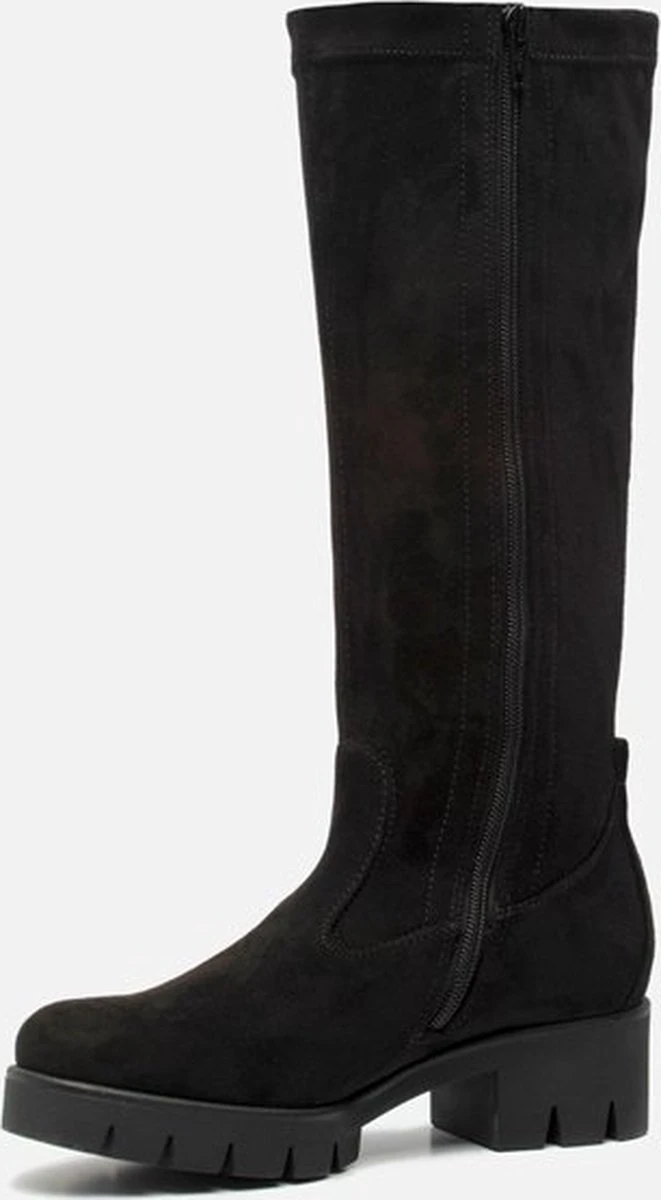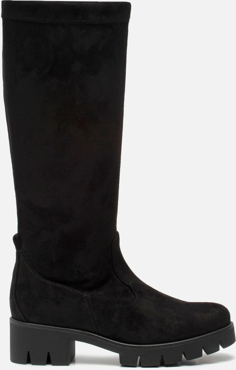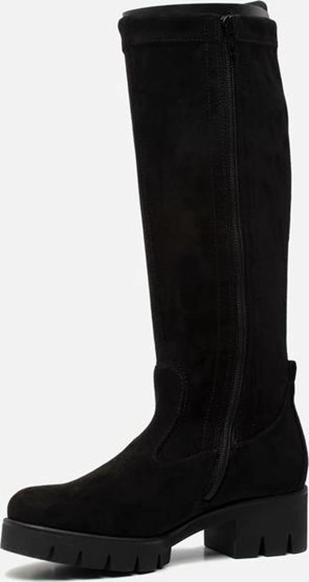 Deze zwarte hoge Gabor laarzen zijn elegante schoenen die iedere look afmaken. De laarzen zijn te combineren met een jurkje, rokje of een jeans. Deze hoge laarzen zijn gemaakt van suède. De voering is gemaakt van textiel. Door middel van een rits zijn de laarzen te sluiten. De laarzen zijn uitgevoerd in een F-leest waardoor ze geschikt zijn voor smallere voeten. De chunky zool heeft een dikte van 3 centimeter en is gemaakt van rubber voor optimale grip tijdens het lopen. Het voetbed van deze zwarte hoge Gabor laarzen is uitneembaar.