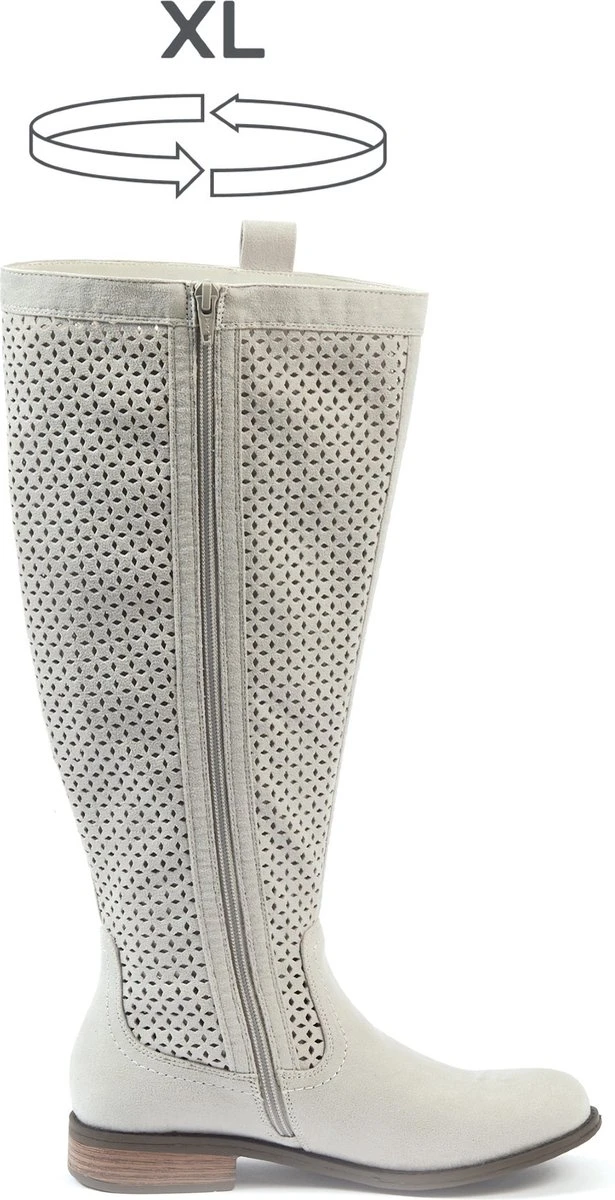 Ons geperforeerde Colette-model is zowel trendy als licht. Hij is geschikt voor brede kuiten, tussen de 43 en 47,20 cm in omtrek afhankelijk van de maat (zie foto met de maattabel). Een soepel paar laarzen die heel gemakkelijk aan te trekken zijn dankzij de YKK-rits over de volledige lengte.