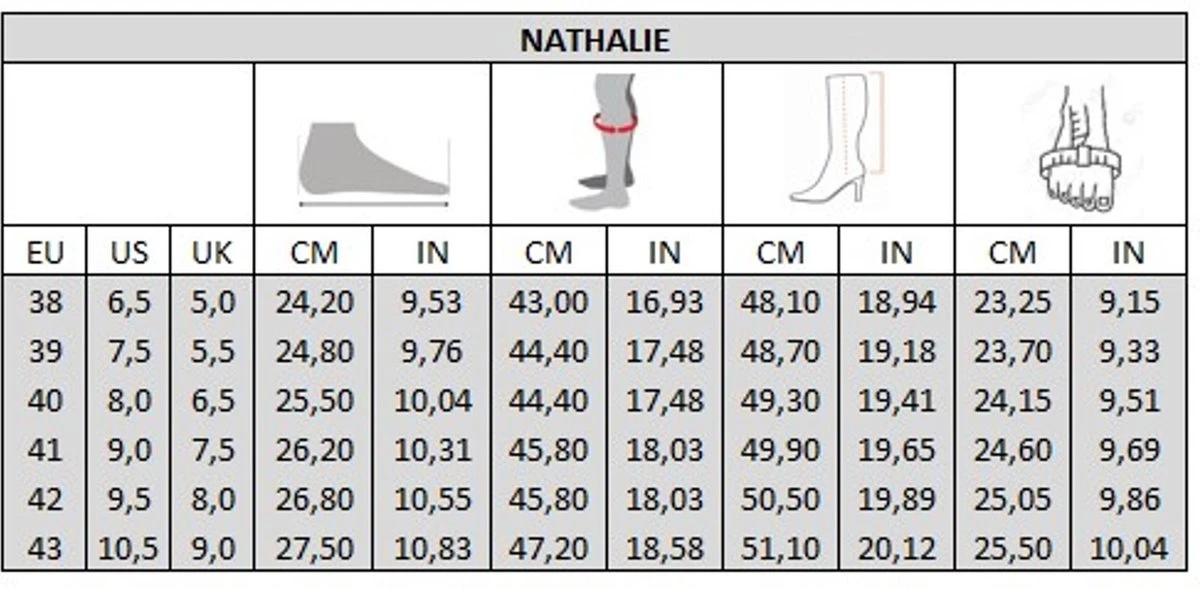 Ons model Nathalie overknee laarzen is geschikt voor brede kuiten met een omtrek van 43 tot 47,20 cm. Uitgerust met een halve ritssluiting, trek je dit paar laarzen gemakkelijk aan. De gebogen en uitneembare binnenzool garandeert optimaal comfort en stelt je in staat om je eigen orthopedische inlegzolen te gebruiken.