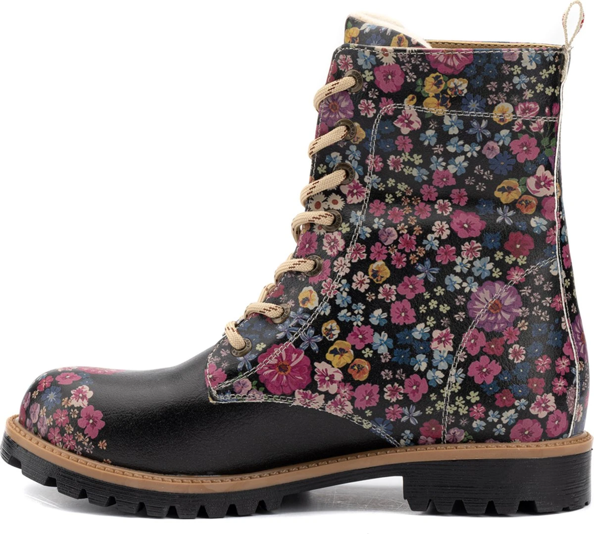 Lange laarzen bedekt met onmisbare bloem motieven. Milieuvriendelijke en stijlvolle long boots met comfortabele zool en vegan leer.