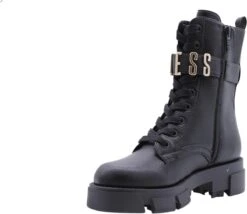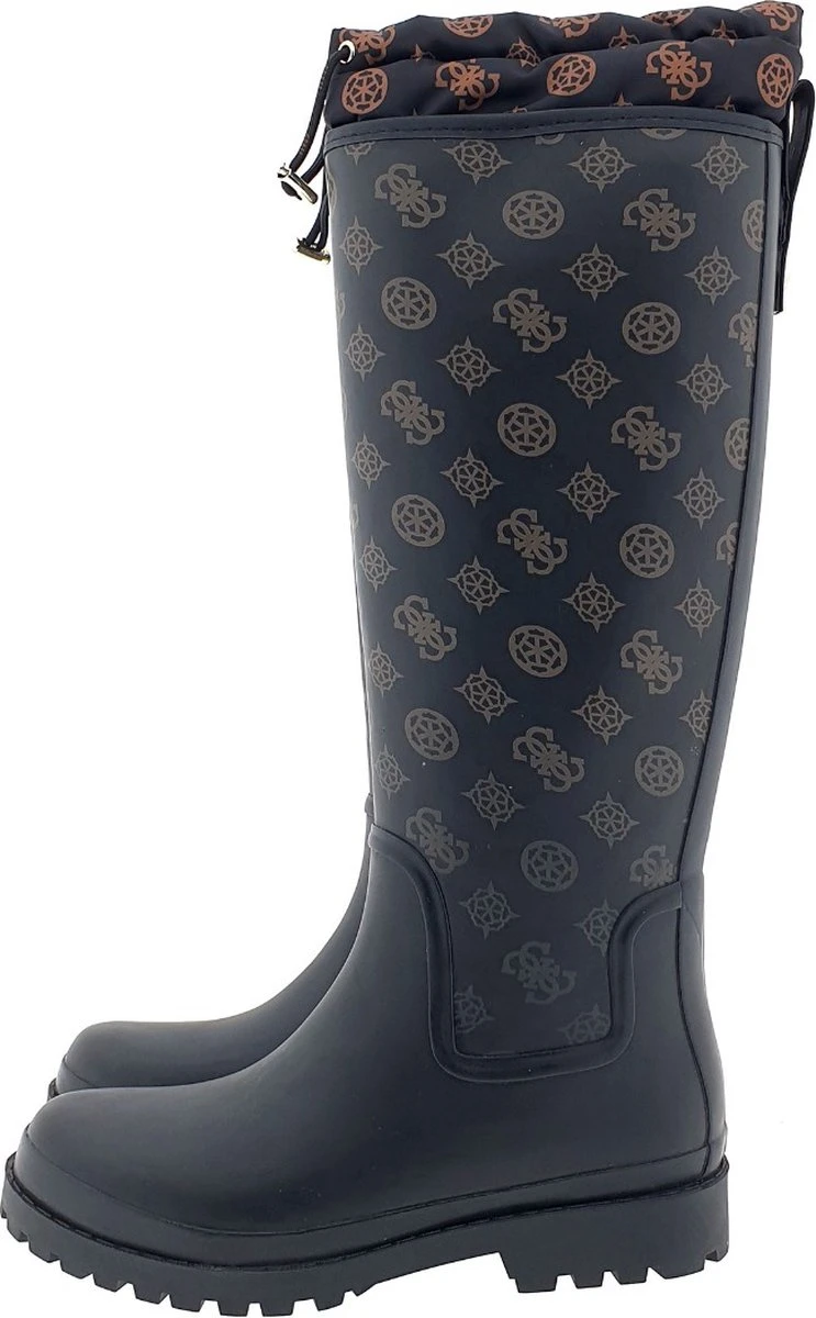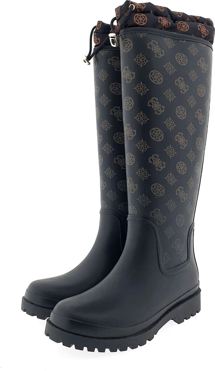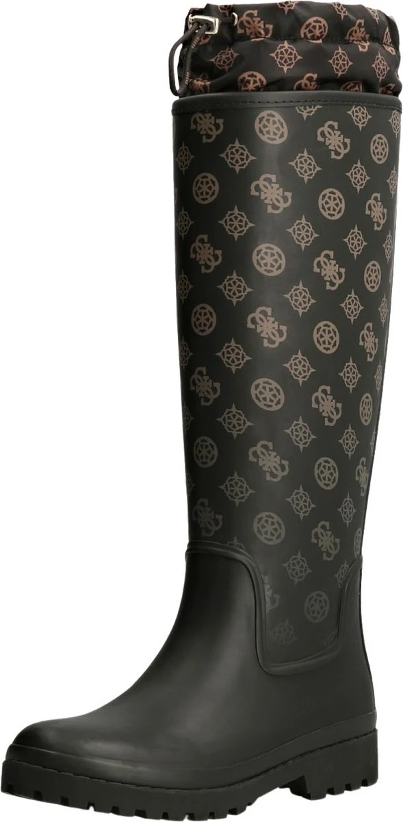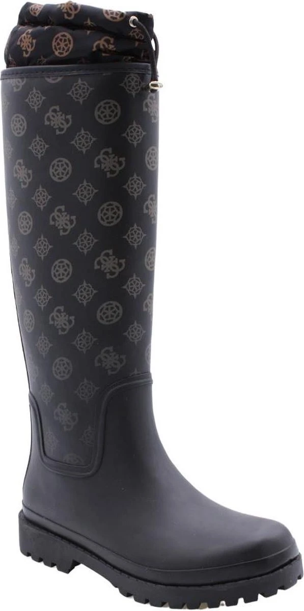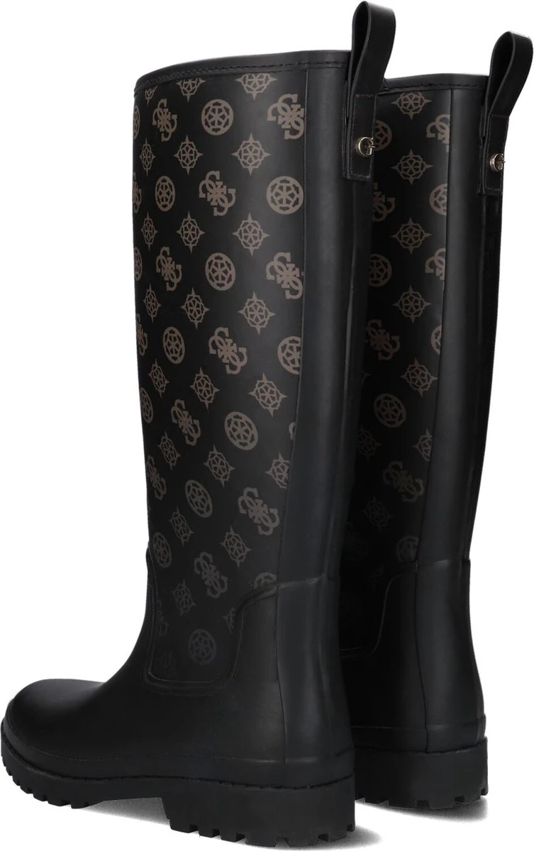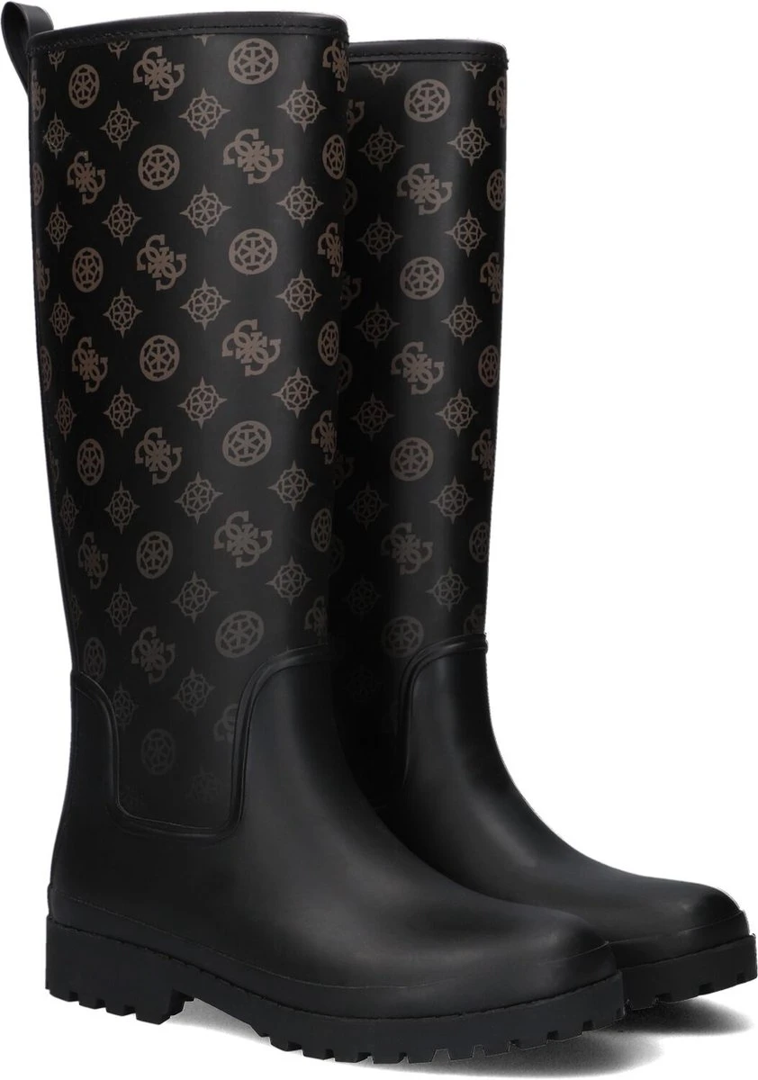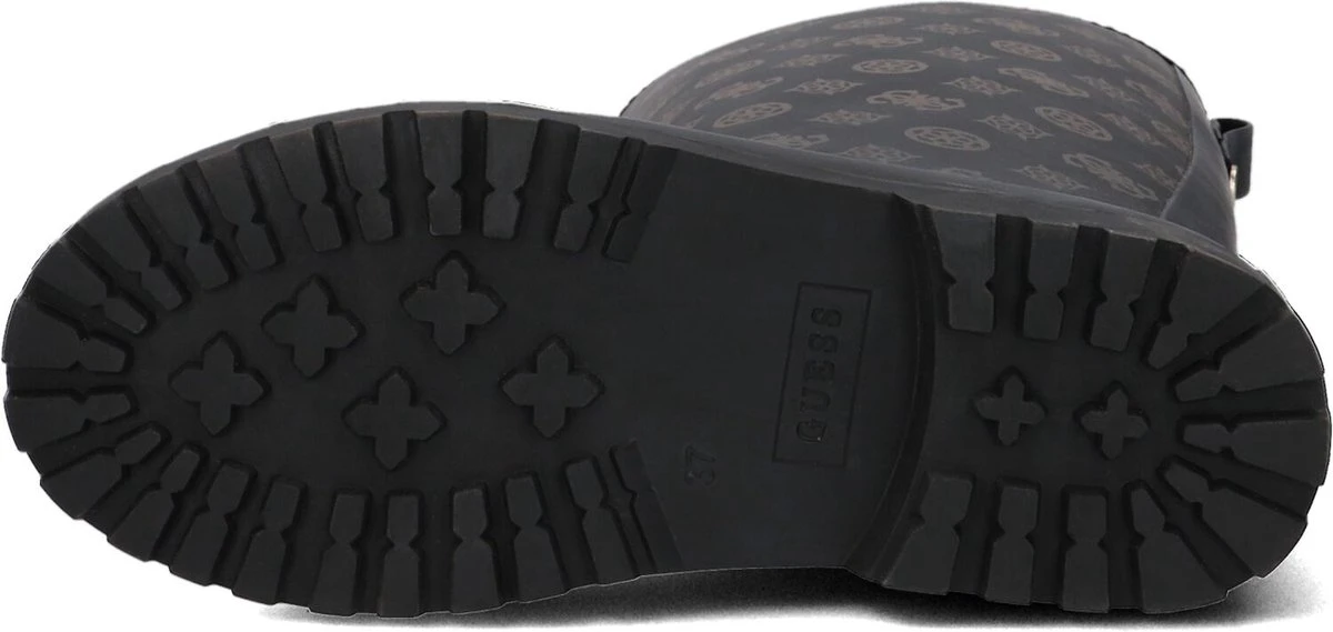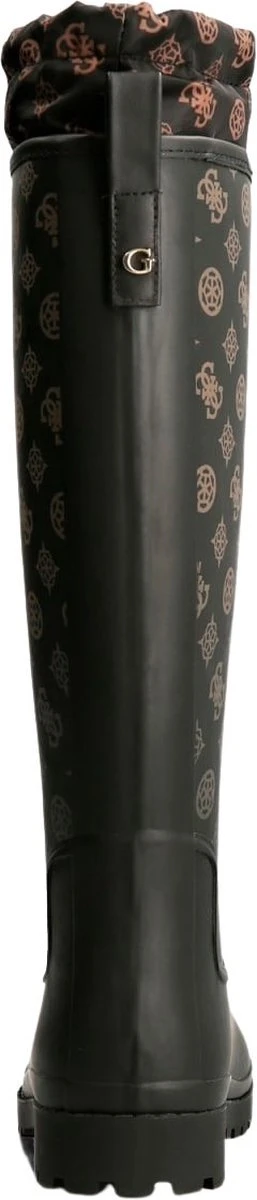 Het bekende, Amerikaanse merk Guess ontstond in 1981 en staat symbool voor een luxueuze, jeugdige, sexy en avontuurlijke levensstijl. Met deze trendy regenlaars Reisa ga jij dan ook voorbereid én stijlvol elk avontuur tegemoet! Dit model is gemaakt van rubber met een zachte voering van textiel en een superhandig schachtstuk met aantreksluiting. Zo sluiten de laarzen perfect aan en weet jij zeker dat jouw voeten droog blijven! Naast dit praktische voordeel, ziet dit item er supertof uit. Zowel het schachtstuk als de schacht zijn voorzien van een merkopdrukkenprint en onder het aantreklusje vind je een metalen merkembleem. De voering is van textiel en de laars is voorzien van een uitneembaar voetbed. De regenlaars heeft een schachthoogte van 37 centimeter zonder schachtstuk (gemeten bij maat 37), een schachthoogte van 43 centimeter met het extra stuk, een hakhoogte van 3 centimeter en de zool is onder de voorvoet bijna 2 centimeter dik. De zoolrand is afgewerkt met een stiksel in reliëf en de loopzool heeft een grof profiel voor veel grip. Laat je door geen regenbui tegenhouden met deze toffe laarzen!