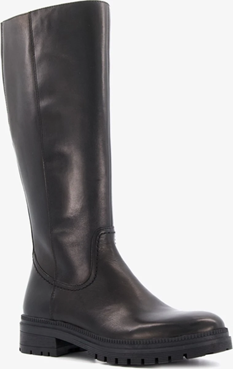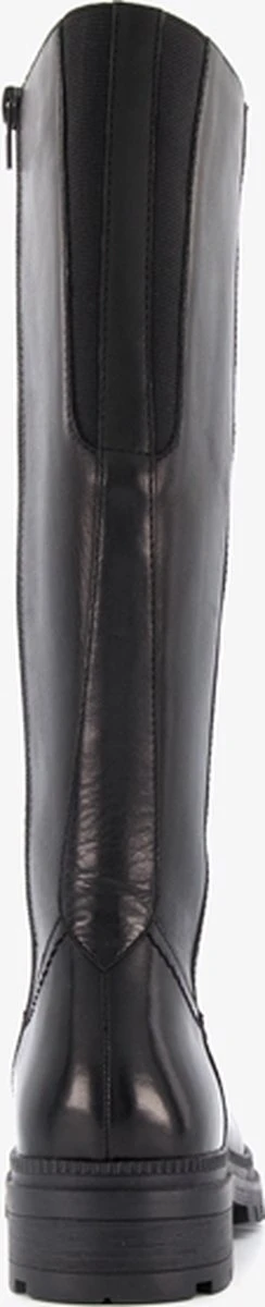 Hoge, zwarte leren laarzen voor dames uit de Hush Puppies collectie. Gemaakt van leer, een binnenwerk van textiel en een stevige profielzool. De laarzen hebben een ritssluiting over de gehele lengte aan de binnenzijde. Het comfortabele voetbed is gemaakt van textiel. Deze is niet uitneembaar. De laarzen van Hush Puppies hebben een schachthoogte van 35 cm, een schachtwijdte van 36 cm een lage hak van circa 2 cm.