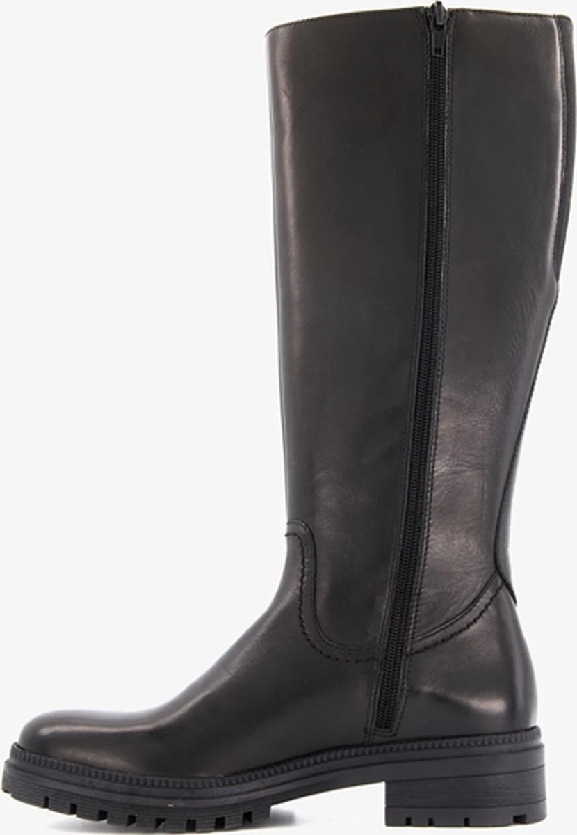 Hoge, zwarte leren laarzen voor dames uit de Hush Puppies collectie. Gemaakt van leer, een binnenwerk van textiel en een stevige profielzool. De laarzen hebben een ritssluiting over de gehele lengte aan de binnenzijde. Het comfortabele voetbed is gemaakt van textiel. Deze is niet uitneembaar. De laarzen van Hush Puppies hebben een schachthoogte van 35 cm, een schachtwijdte van 36 cm een lage hak van circa 2 cm.