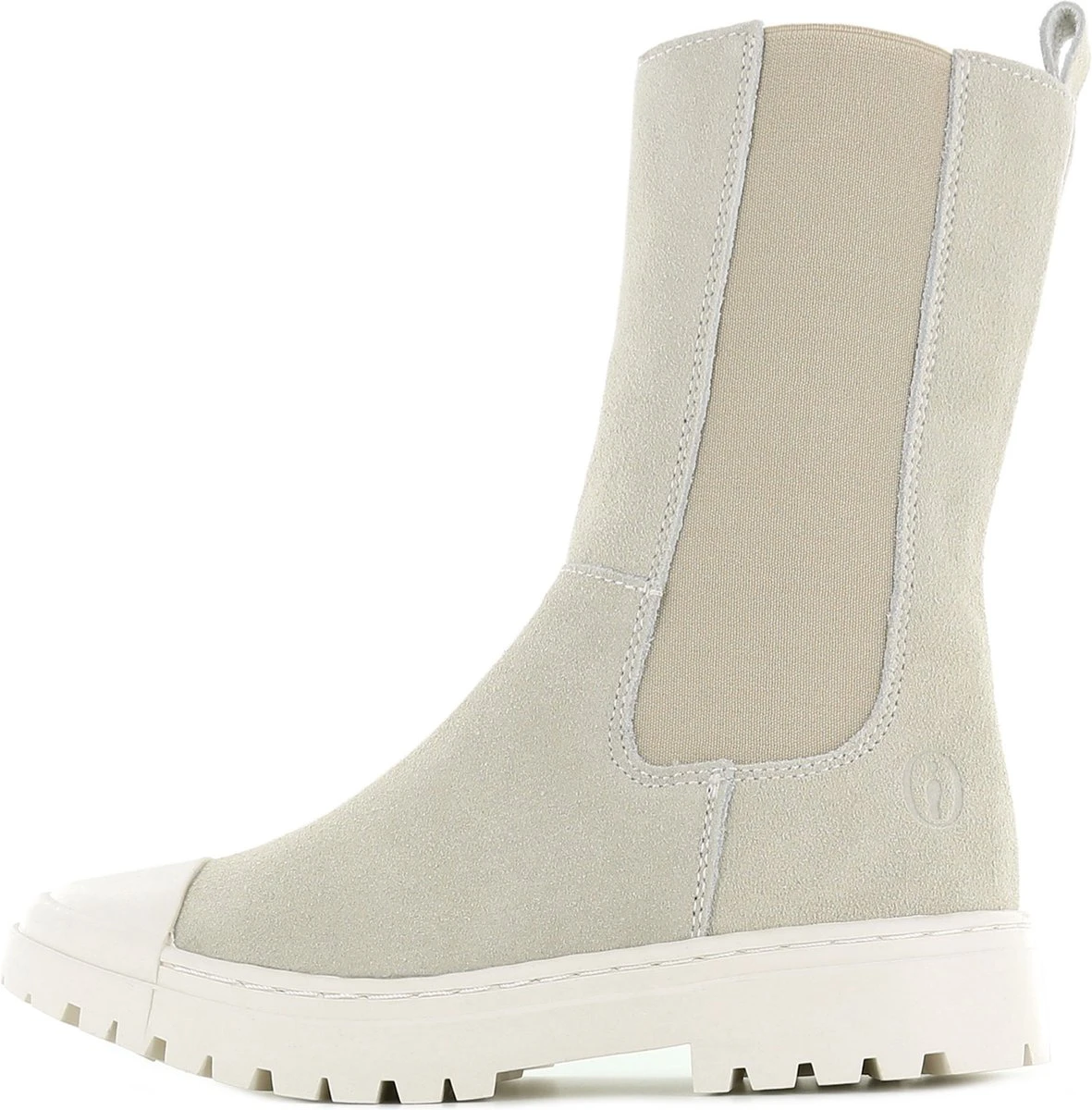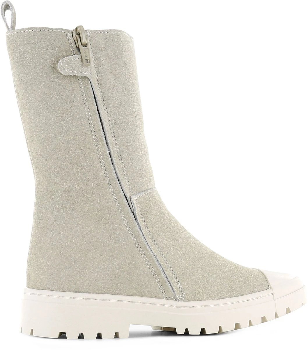 Trend alert! De leuke hoge chelseaboots shop je nu ook voor je kleine meisje bij Shoesme. Gemaakt van beige leer, met een hoge elastiek en een handige stootneus en wat grove witte zool. De boots hebben aan de binnenkant een ritssluiting, dus de schoenen kunnen gemakkelijk aan en uit. Het leren voetbed is uitneembaar.
