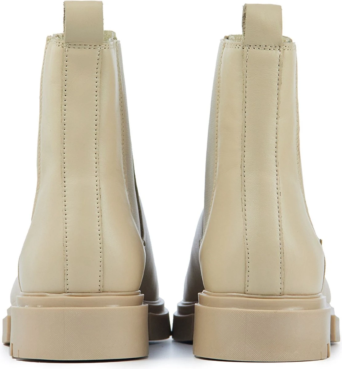 Damesschoen model M1108 in de kleur beige van Mace Pasvorm Dit model van Mace valt normaal op maat Beschrijving Lage chelsealaars met ronde neus voor dames van het merk Mace. Deze beige enkellaarsjes zijn uitgevoerd in glad leer. Beide zijden van de schacht bevatten elastiek. De binnenkant is uitgevoerd in leer en een stevig contrefort draagt bij aan het loopgemak. De rubberen zool heeft een grof profiel voor stevige grip.