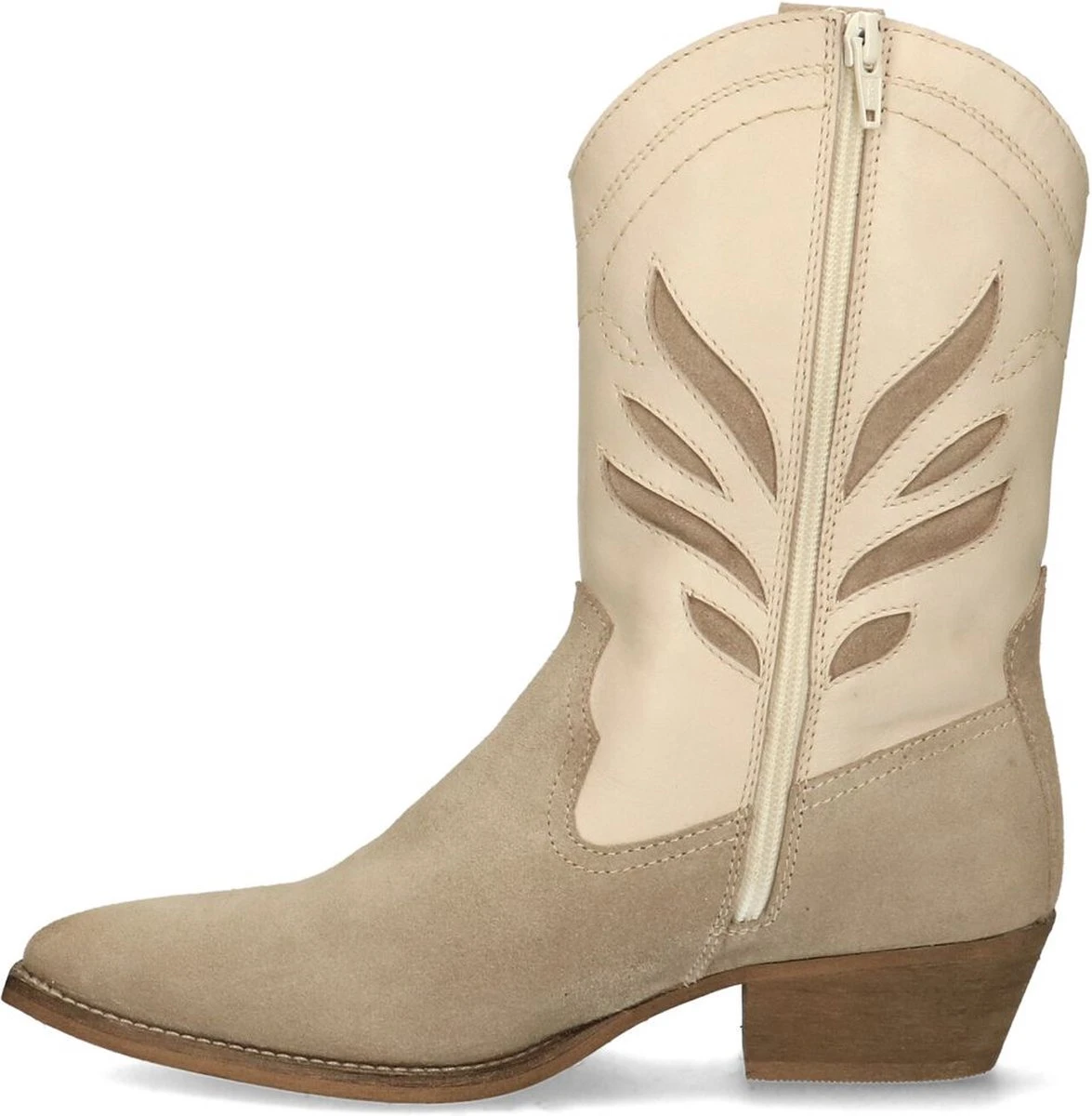 Beige leren cowboy laarzen van Manfield. Deze cowboy laarzen zijn gemaakt van leer in combinatie met suède, daarom raden we je aan deze cowboy laarzen te verzorgen en beschermen met de Collonil Carbon. Deze cowboylaarzen zijn beige met wit en zijn daardoor perfect te dragen in zowel de zomer als in de winter.
