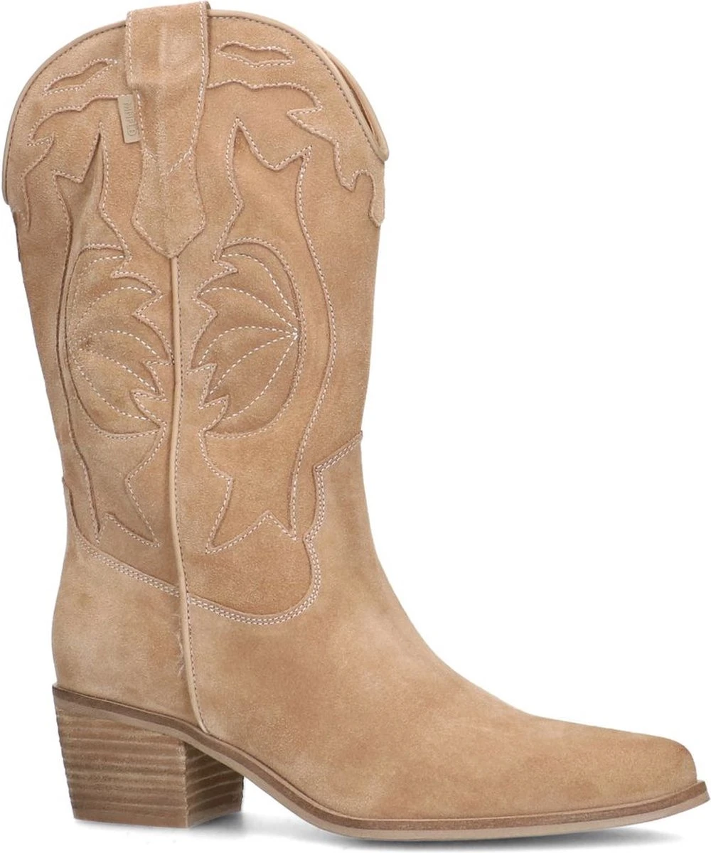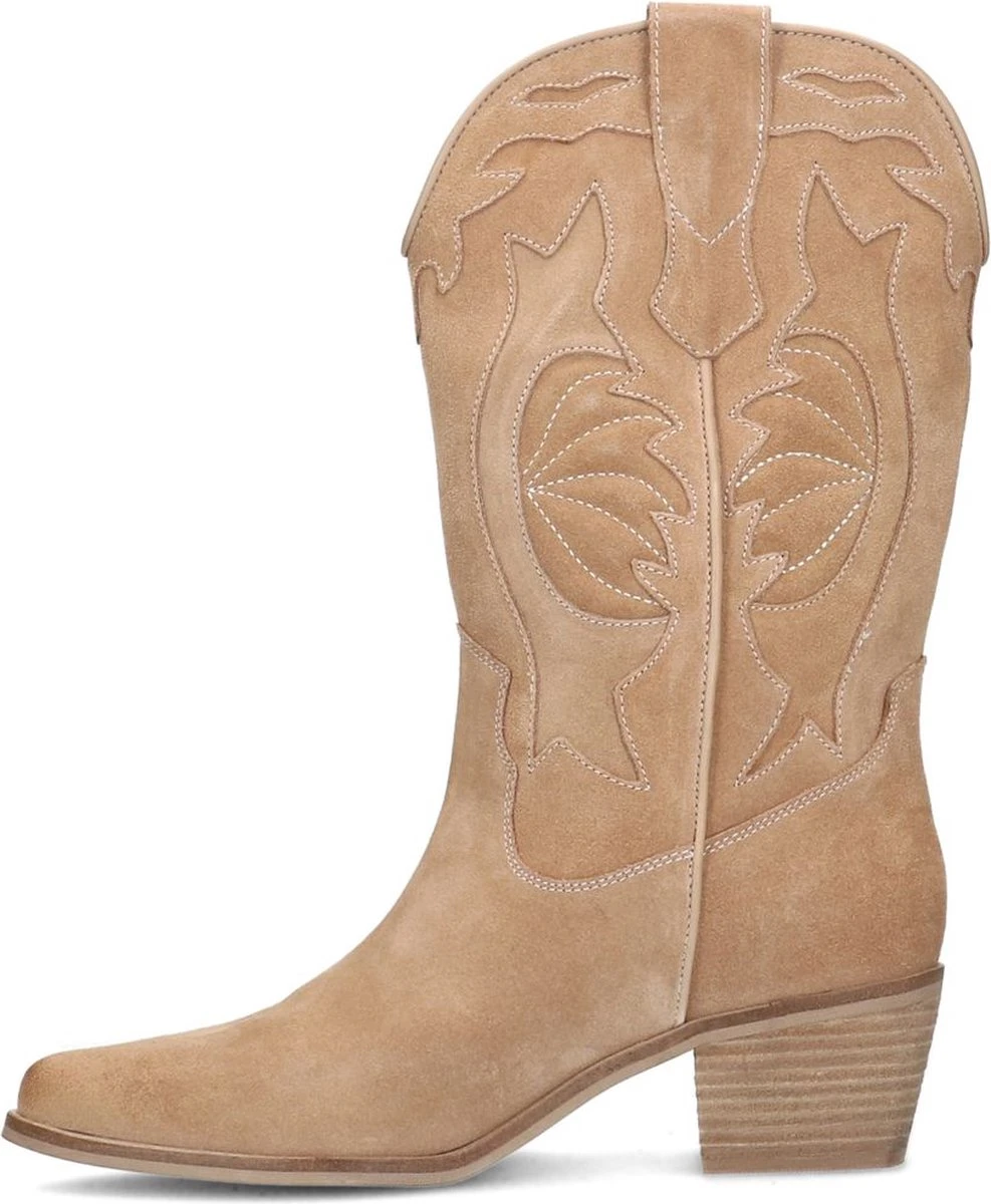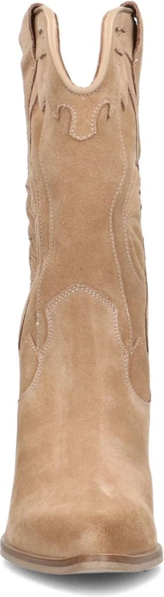Taupe suède cowboy laarzen van Manfield. Deze hoge cowboy laarzen zijn gemaakt van suède, daarom raden we je aan deze cowboy laarzen te verzorgen en beschermen met de Suède/Nubuck spray in transparant. Deze cowboy laarzen hebben een schacht met een hoogte van 30 cm en de omtrek bedraagt 36 cm. De blokhak heeft een hoogte van 5 cm.