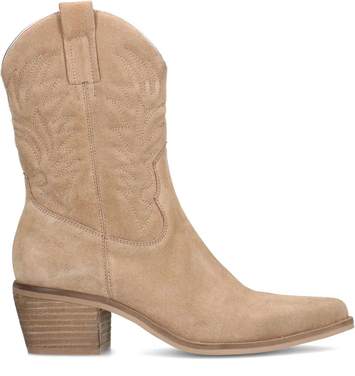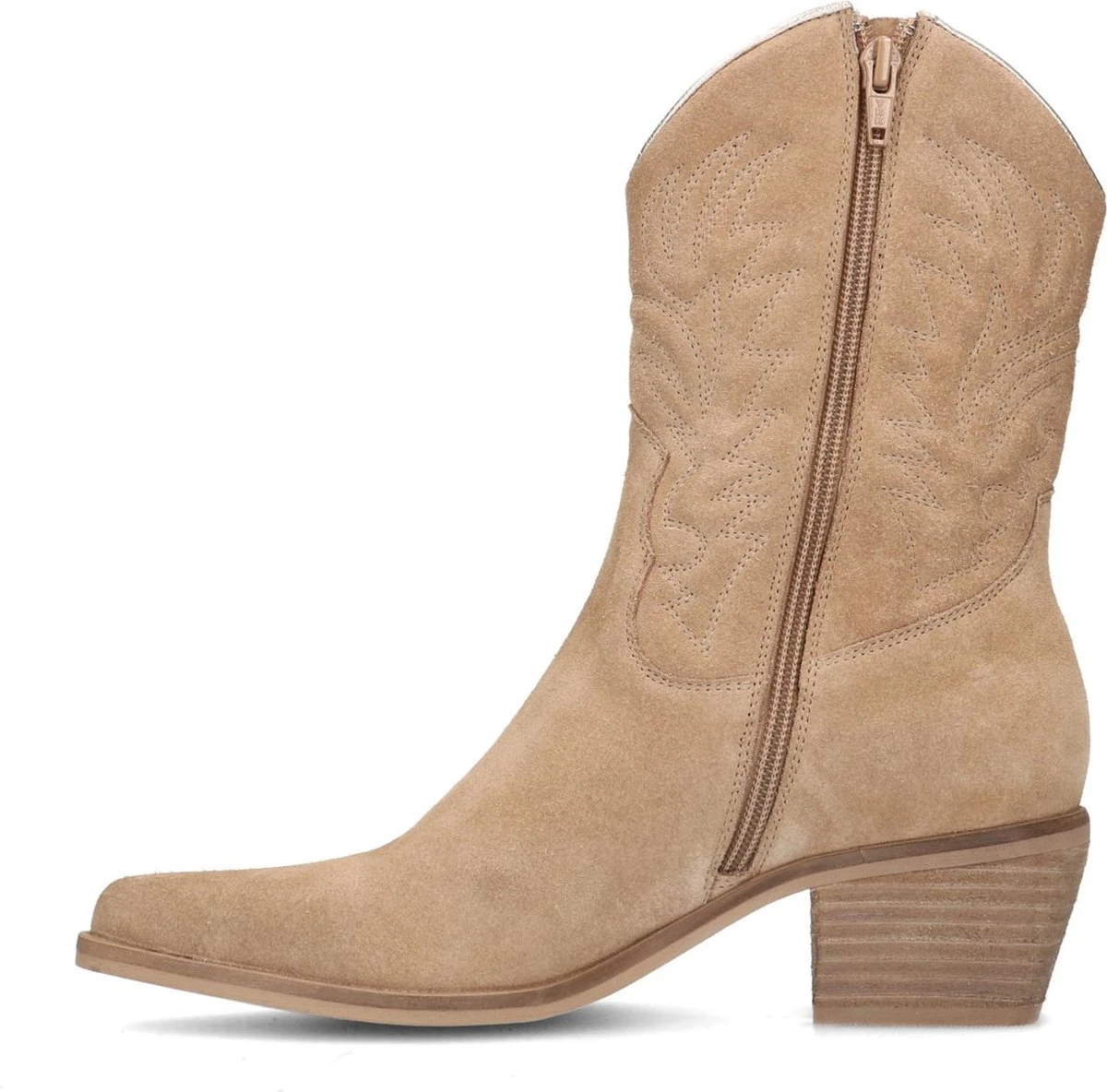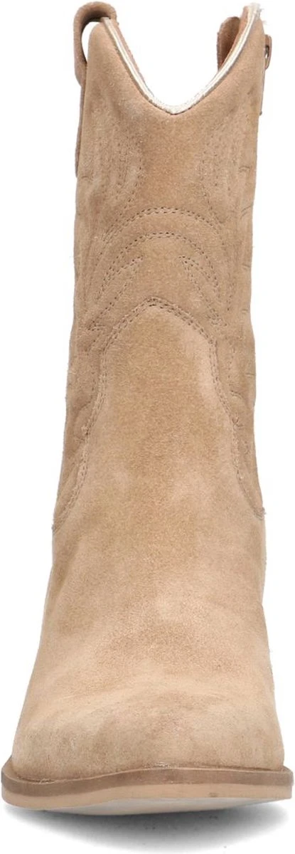 Taupe suède cowboy laarzen van Manfield. Deze cowboylaarzen zijn gemaakt van suède en de binnenzijde bestaat uit leer. We raden je aan deze cowboy laarzen te verzorgen en beschermen met de Suède/Nubuck spray in transparant. Deze western boots hebben een blokhak met een hoogte van 5 cm en de schacht heeft een hoogte van circa 20 cm.