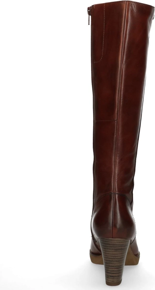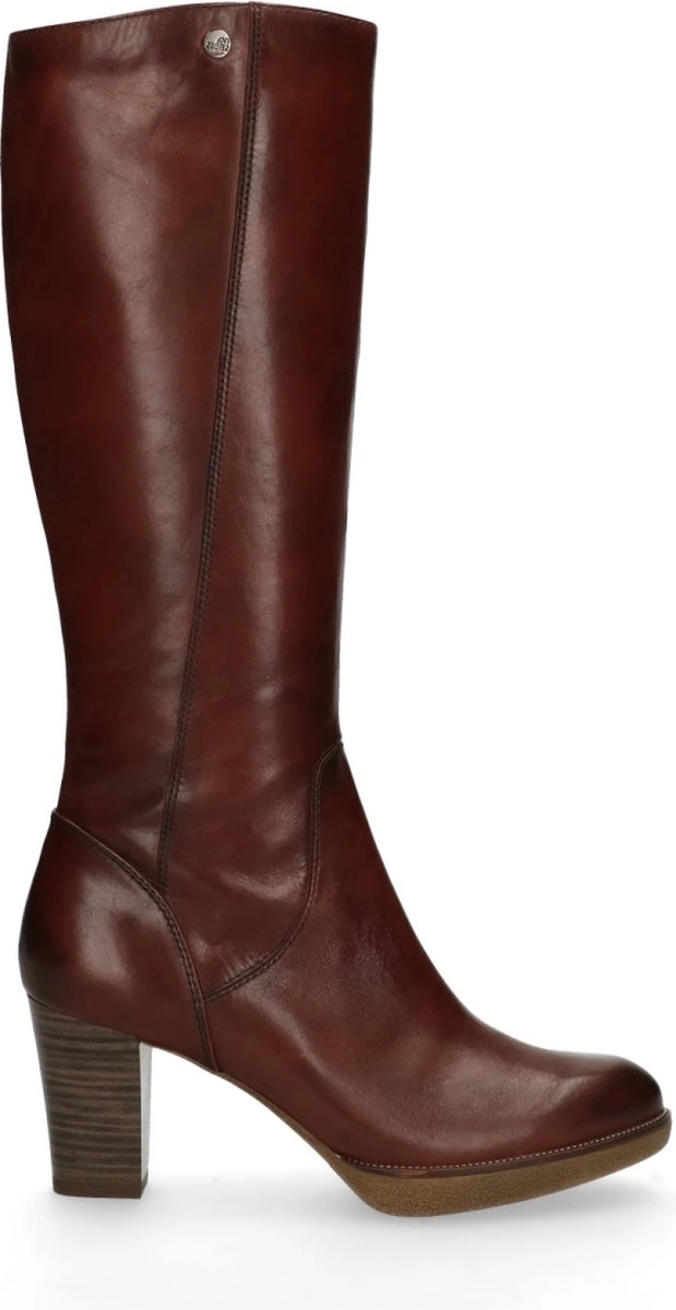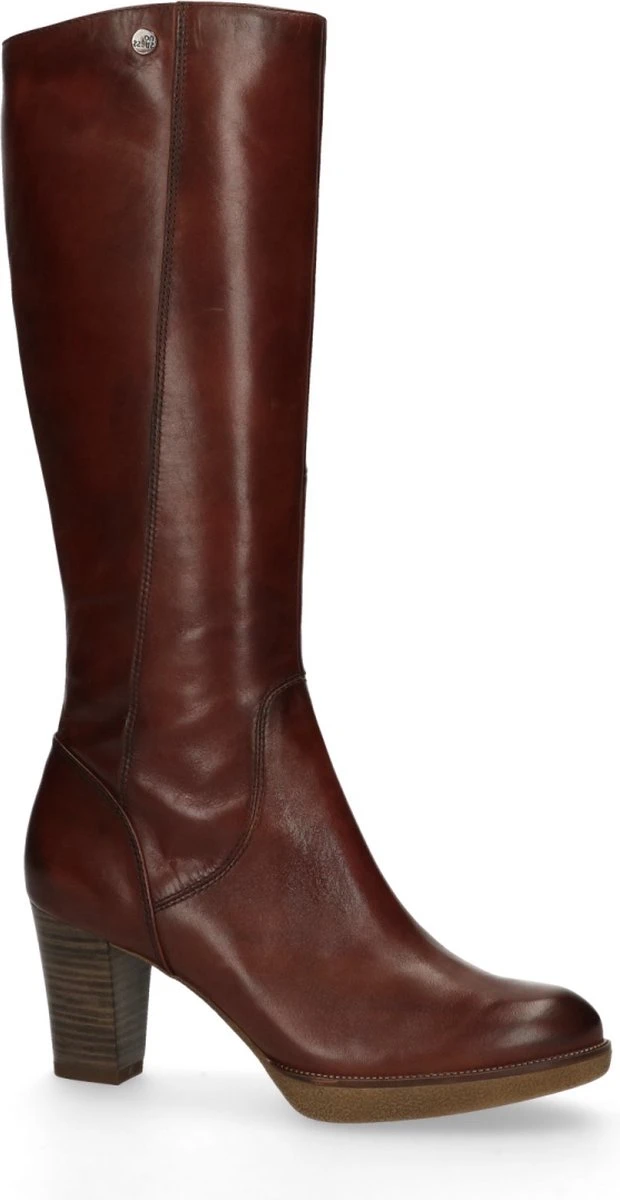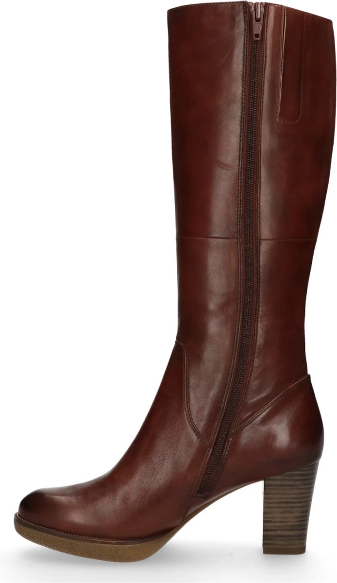 Hoge cognac laarzen van het merk No Stress. De laarzen zijn gemaakt van leer. De laarzen zijn eindeloos te combineren met een jurk of broek. De hakhoogte van de laars is 7,5 cm. En de rits sluiting bevind zit in de binnenkant van de laars. De schachthoogte is 35 cm gemeten vanaf de hak. De schachtomvang is 33cm bij maat 37. Om de laarzen zo lang mogelijk mooi te houden is het belangrijk dat je de schoenen verzorgt met de juiste onderhoudsproducten.