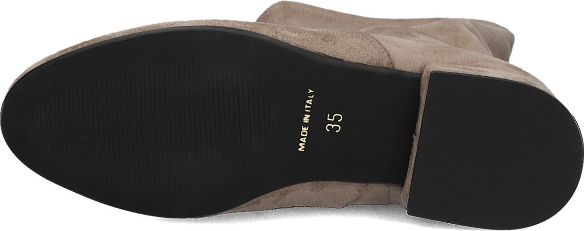 De elegante Italiaanse ontwerpen van het merk Notre-V zijn er voor de verfijnde vrouw die er graag effortless chic uit wil zien. De producten zijn gemaakt van luxe materialen met subtiele accenten en een knipoog naar de laatste trends. Deze taupekleurige lange laars 22260 is gemaakt van soepel suèdelook en heeft een vrouwelijke look en een slanke vormgeving. Je trekt ‘m supergemakkelijk aan door de halve, zwarte ritssluiting. De schacht is gevoerd met textiel en heeft een vast, dempend voetbed. Het gelaagde hakje is 3 centimeter hoog en de schacht heeft een hoogte van 41, gemeten bij maat 38. Waar draag jij deze feminin laars bij?