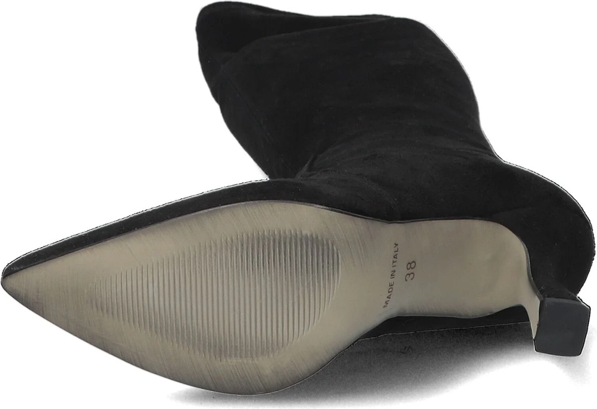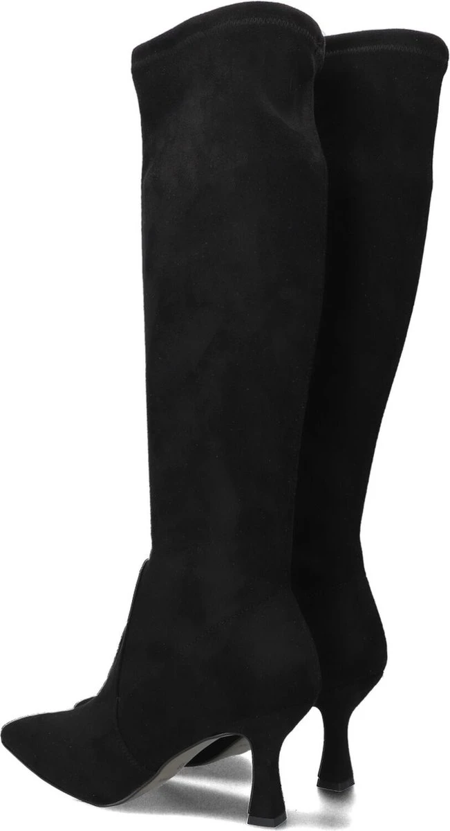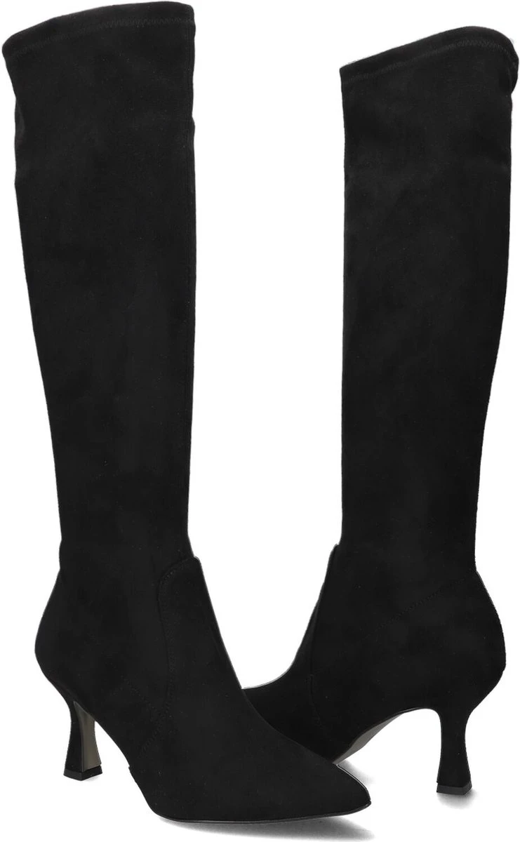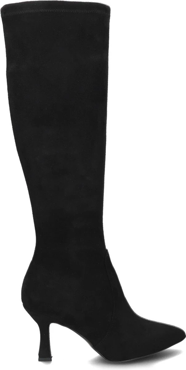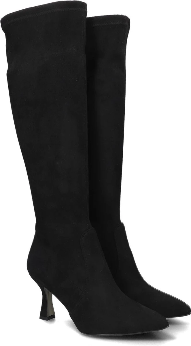 De elegante Italiaanse ontwerpen van het merk Notre-V zijn er voor de verfijnde vrouw die er graag effortless chic uit wil zien. De producten zijn gemaakt van luxe materialen met subtiele accenten en een knipoog naar de laatste trends. Deze zwarte hoge laars 8780 heeft een vrouwelijke look en een slanke vormgeving. De laars is uitgevoerd in soepel stretch-textiel en heeft een hoge kittenheel en een rechte schacht tot net onder de knie. De schacht is gevoerd met textiel en de leren binnenvoering om de voet voelt comfortabel aan en dit model heeft een vast voetbed. De hak is 8 centimeter hoog en de schacht heeft een hoogte van 43 centimeter, gemeten bij maat 38. De rekbare kuitwijdte is 34 centimeter, gemeten op het breedste punt. Waar draag jij deze feminin laars bij?
