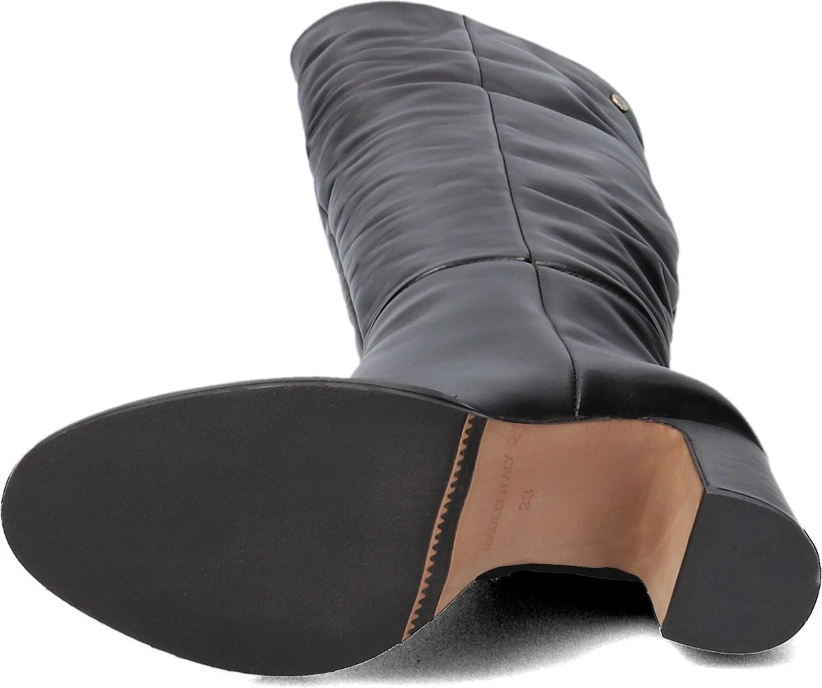 De elegante Italiaanse ontwerpen van het merk Notre-V zijn er voor de verfijnde vrouw die er graag effortless chic uit wil zien. De producten zijn gemaakt van luxe materialen met subtiele accenten en een knipoog naar de laatste trends. Deze zwarte lange laars An280 heeft een vrouwelijke uitstraling door de slanke vormgeving die jouw benen mooi accentueert. De laars is uitgevoerd in glanzend licht gestructureerd leer en is voorzien van een aansluitende schacht met een ritssluiting en een afgeronde neus en een beklede blokhak. Het binnenwerk van net zo zacht en soepel leer voelt comfortabel aan en heeft een vast voetbed. De blokhak is 8 centimeter hoog en de schacht heeft een hoogte van 51 centimeter, gemeten bij maat 37. De kuitwijdte is 36 centimeter, gemeten op het breedste punt. Maak je outfit extra feminin met deze luxe laars!