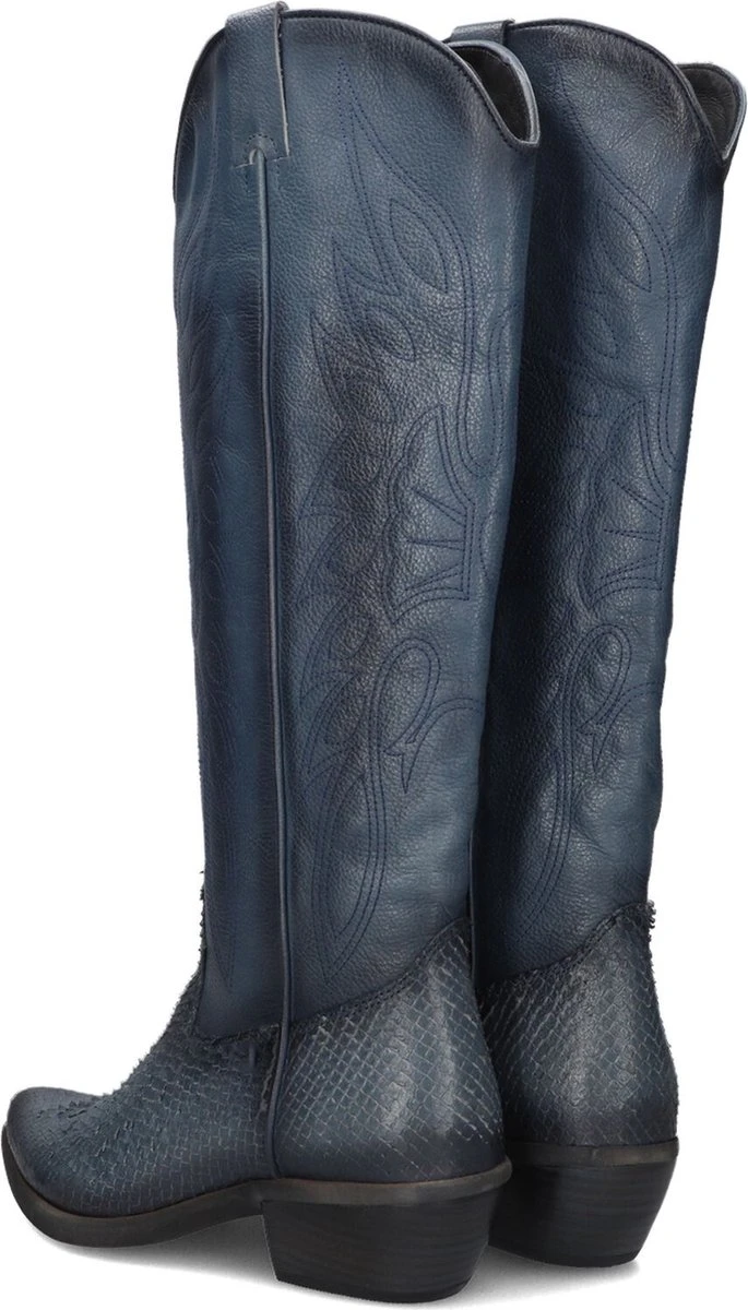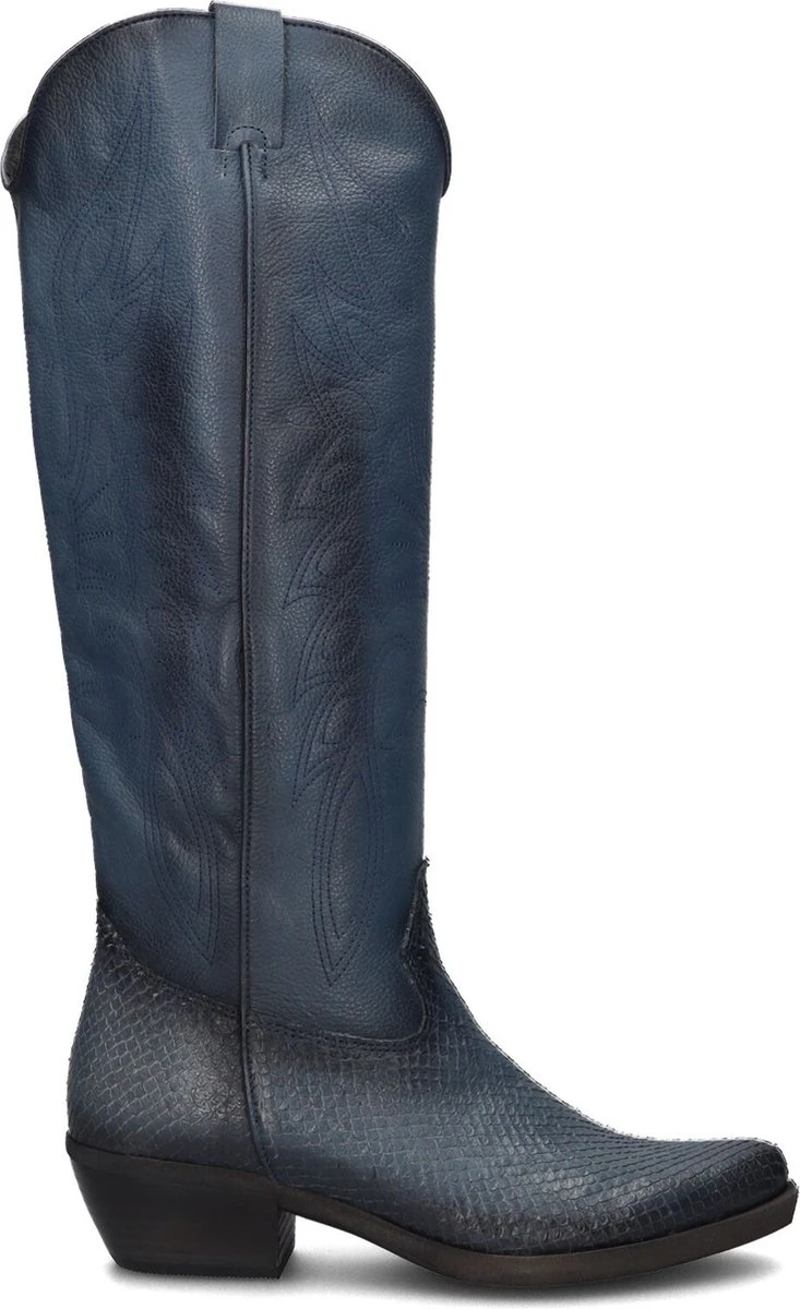 Zo’n cowboylaarsje dat zich uitstekend leent om bij ontelbare outfits te combineren én jou een toffe uitstraling geeft, dat is deze blauwe laars C458 uit de collectie van het merk Omoda. Gemaakt van luxe materialen met subtiele accenten. Deze halflange laars heeft city western details, zoals de spitse neus, het doorgestikte vlammenpatroon op de schacht en neus, de gelaagde westernhak en een stoere schacht met V inkepingen aan de voor en achterzijde voor een vernieuwende en trendy look. De schacht is uitgevoerd in gestructureerd leer terwijl de voet en wReef van de laars gesierd is met een scHUBben patroon en het binnenwerk heeft een soepele textiele voering in combinatie met een leder vast voetbed met comfortabele demping. Trek de laars eenvoudig aan en uit met de aantreklusjes boven aan de schacht. De blokhak is uitgevoerd in houtlook en de loopzool is uitgevoerd in lichtgewicht rubber en is voorzien van een gripvast profiel. De hak heeft een hoogte van 5 centimeter en de schacht heeft een hoogte van 40 centimeter, gemeten bij maat 38. Wij vinden het een prachtig laarsje om te dragen tijdens allerlei activiteiten!