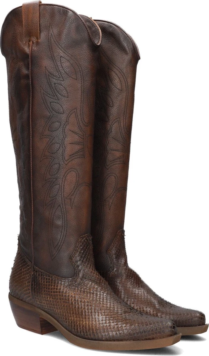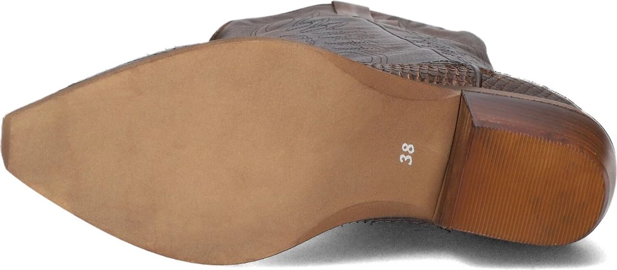 Zo’n cowboylaarsje dat zich uitstekend leent om bij ontelbare outfits te combineren én jou een toffe uitstraling geeft, dat is deze donkerbruine laars C458 uit de collectie van het merk Omoda. Gemaakt van luxe materialen met subtiele accenten. Deze halflange laars heeft city western details, zoals de spitse neus, het doorgestikte vlammenpatroon op de schacht en neus, de gelaagde westernhak en een stoere schacht met V inkepingen aan de voor en achterzijde voor een vernieuwende en trendy look. De schacht is uitgevoerd in gestructureerd leer terwijl de voet en wReef van de laars gesierd is met een scHUBben patroon en het binnenwerk heeft een soepele textiele voering in combinatie met een leder vast voetbed met comfortabele demping. Trek de laars eenvoudig aan en uit met de aantreklusjes boven aan de schacht. De blokhak is uitgevoerd in houtlook en de loopzool is uitgevoerd in lichtgewicht rubber en is voorzien van een gripvast profiel. De hak heeft een hoogte van 5 centimeter en de schacht heeft een hoogte van 40 centimeter, gemeten bij maat 38. Wij vinden het een prachtig laarsje om te dragen tijdens allerlei activiteiten!