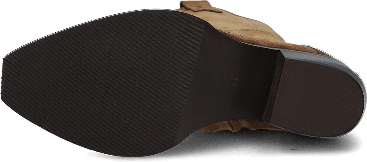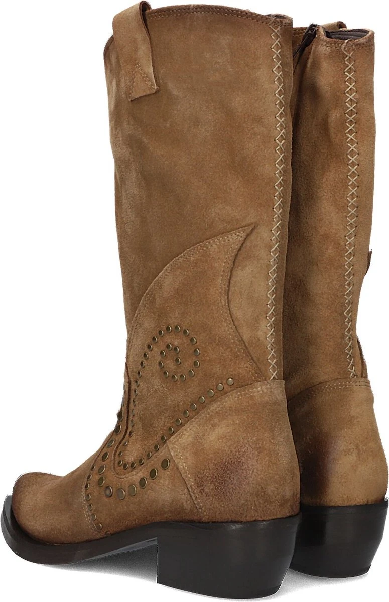 Zo’n cowboylaarsje dat zich uitstekend leent om bij ontelbare outfits te combineren én jou een toffe uitstraling geeft, dat is dit camelkleurige item D264 uit de collectie van het eigen Omoda merk. Deze elegante halflange laars heeft city western details, zoals de spitse neus, de opgestikte delen aan de schacht, de gelaagde westernhak en de rechte schacht met aantreklussen. Het bovenwerk is uitgevoerd in hoogwaardig suède en heeft een trendy afwerking gekregen door de afgeronde bolstuds op de schacht en wReef. Het binnenwerk heeft een soepele leren voering in combinatie met textiel en een vast voetbed met comfortabele demping. Trek de laars eenvoudig aan en uit met de lange ritssluiting aan de binnenzijde. De loopzool is uitgevoerd in rubber en is voorzien van een gripvast profiel en de blokhak is afgewerkt met een haktip. De hak heeft een hoogte van 5 centimeter en de schacht heeft een hoogte van 30 centimeter met een wijdte van 36 centimeter gemeten aan de bovenkant. Wij vinden het een prachtig laarsje om te dragen tijdens allerlei activiteiten!