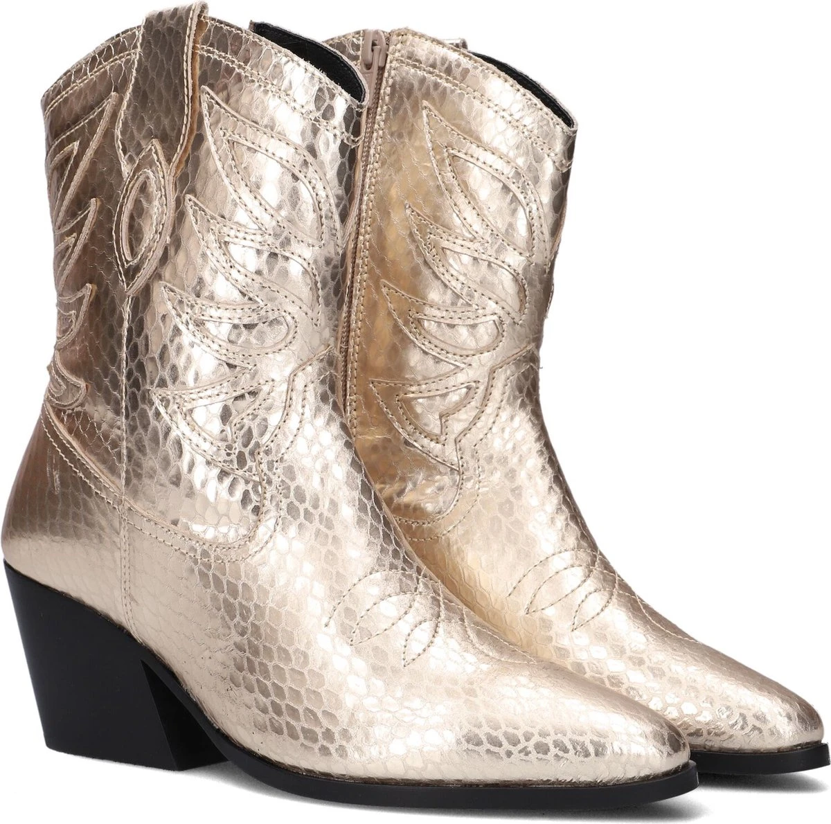 Zo’n cowboylaarsje dat zich uitstekend leent om bij ontelbare outfits te combineren én jou een toffe uitstraling geeft, dat is dit goudkleurige item Lplola-07 uit de collectie van het merk Omoda. Deze elegante halflange laars heeft city western details, zoals de spitse neus, het vlammenpatroon op de schacht en neus, de gelaagde westernhak en de afgeronde schacht met aantreklus. Het bovenwerk is uitgevoerd in gestructureerd leer en het binnenwerk heeft een soepele leren voering in combinatie met ademend neopreen textiel en een vast voetbed met comfortabele demping. Trek de laars eenvoudig aan en uit met de lange ritssluiting aan de binnenzijde. De loopzool is uitgevoerd in rubber en is voorzien van een gripvast profiel en de blokhak is afgewerkt met een kunststof haktip. De hak heeft een hoogte van 7 centimeter en de schacht heeft een hoogte van 18 centimeter. Wij vinden het een prachtig laarsje om te dragen tijdens allerlei activiteiten!