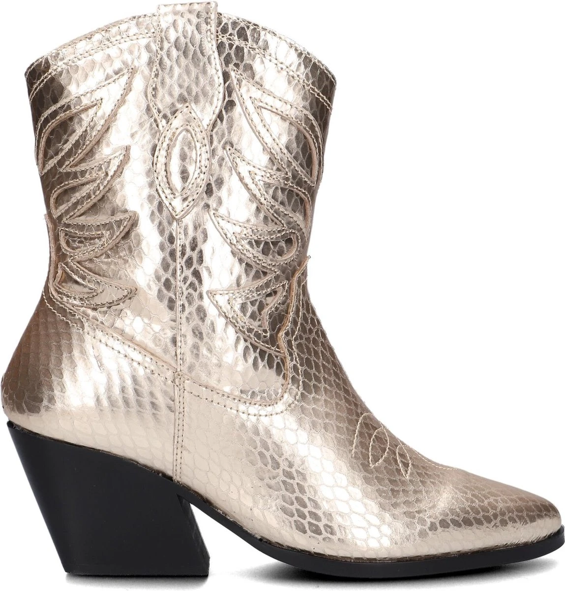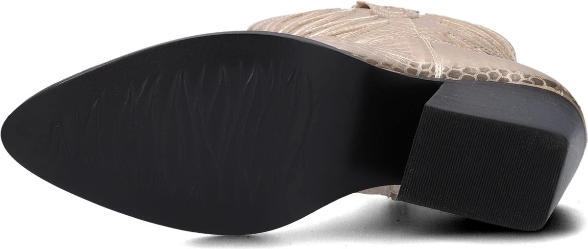 Zo’n cowboylaarsje dat zich uitstekend leent om bij ontelbare outfits te combineren én jou een toffe uitstraling geeft, dat is dit goudkleurige item Lplola-07 uit de collectie van het merk Omoda. Deze elegante halflange laars heeft city western details, zoals de spitse neus, het vlammenpatroon op de schacht en neus, de gelaagde westernhak en de afgeronde schacht met aantreklus. Het bovenwerk is uitgevoerd in gestructureerd leer en het binnenwerk heeft een soepele leren voering in combinatie met ademend neopreen textiel en een vast voetbed met comfortabele demping. Trek de laars eenvoudig aan en uit met de lange ritssluiting aan de binnenzijde. De loopzool is uitgevoerd in rubber en is voorzien van een gripvast profiel en de blokhak is afgewerkt met een kunststof haktip. De hak heeft een hoogte van 7 centimeter en de schacht heeft een hoogte van 18 centimeter. Wij vinden het een prachtig laarsje om te dragen tijdens allerlei activiteiten!