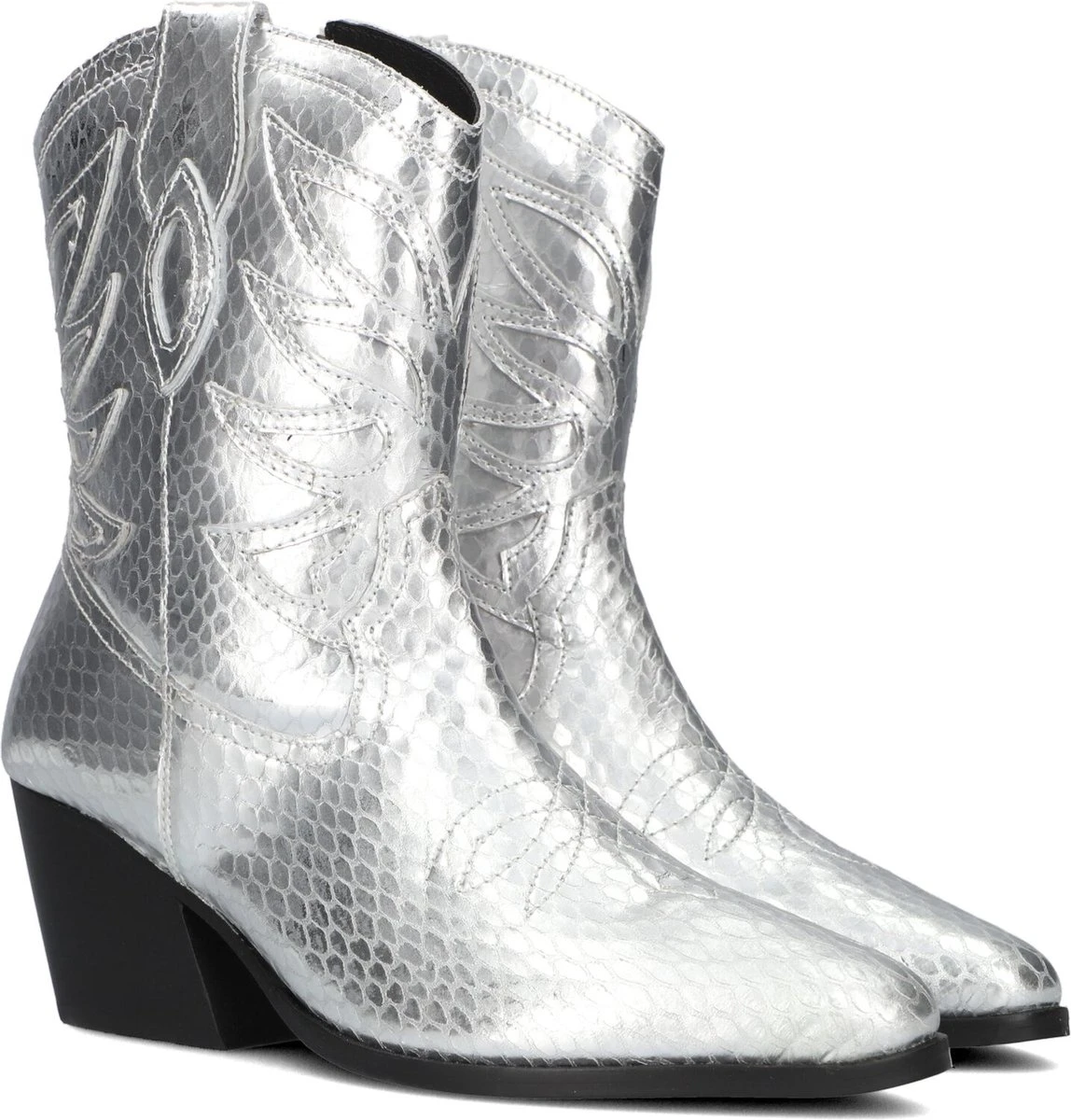 Zo’n cowboylaarsje dat zich uitstekend leent om bij ontelbare outfits te combineren én jou een toffe uitstraling geeft, dat is dit zilverkleurige item Lplola-07 uit de collectie van het merk Omoda. Deze elegante halflange laars heeft city western details, zoals de spitse neus, het vlammenpatroon op de schacht en neus, de gelaagde westernhak en de afgeronde schacht met aantreklus. Het bovenwerk is uitgevoerd in gestructureerd leer en het binnenwerk heeft een soepele leren voering in combinatie met ademend neopreen textiel en een vast voetbed met comfortabele demping. Trek de laars eenvoudig aan en uit met de lange ritssluiting aan de binnenzijde. De loopzool is uitgevoerd in rubber en is voorzien van een gripvast profiel en de blokhak is afgewerkt met een kunststof haktip. De hak heeft een hoogte van 7 centimeter en de schacht heeft een hoogte van 18 centimeter. Wij vinden het een prachtig laarsje om te dragen tijdens allerlei activiteiten!