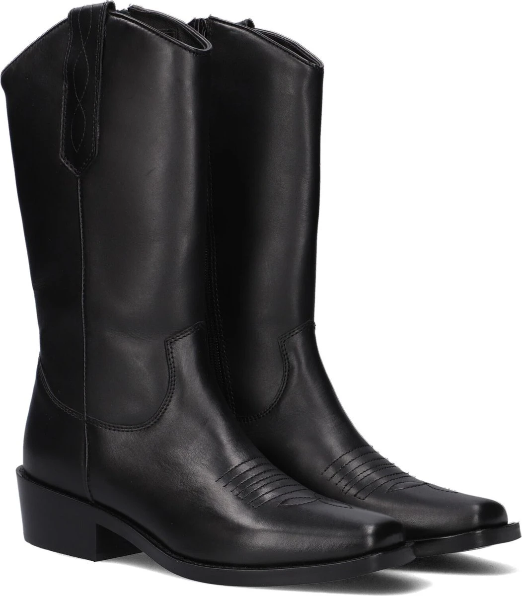 Deze cowboylaarzen Lpsidonia-01 van het merk Omoda zijn gemaakt van soepel, zwart gladleer en heeft stoere western accenten. De neus en aantreklus heeft een gestikt patroon en extra leuk is de leren bies op de zijkant samen met de gestikte zoolrand. Dit model heeft een smalle vormgeving en is afgewerkt met een carré neus. De laars is textiel gevoerd en heeft een vast, leren voetbed. De houtlook hak is afgewerkt met een rubberen haktip en is 4,5 centimeter hoog waardoor je de laarsjes gemakkelijk een hele dag aan kunt zonder pijn te ervaren! De loopzool is gemaakt van rubber wat zorgt voor een fijne grip en stabiliteit. De schachthoogte is 29 centimeter. Combineer ‘m onder jouw lievelings jurk of met een stoere short!