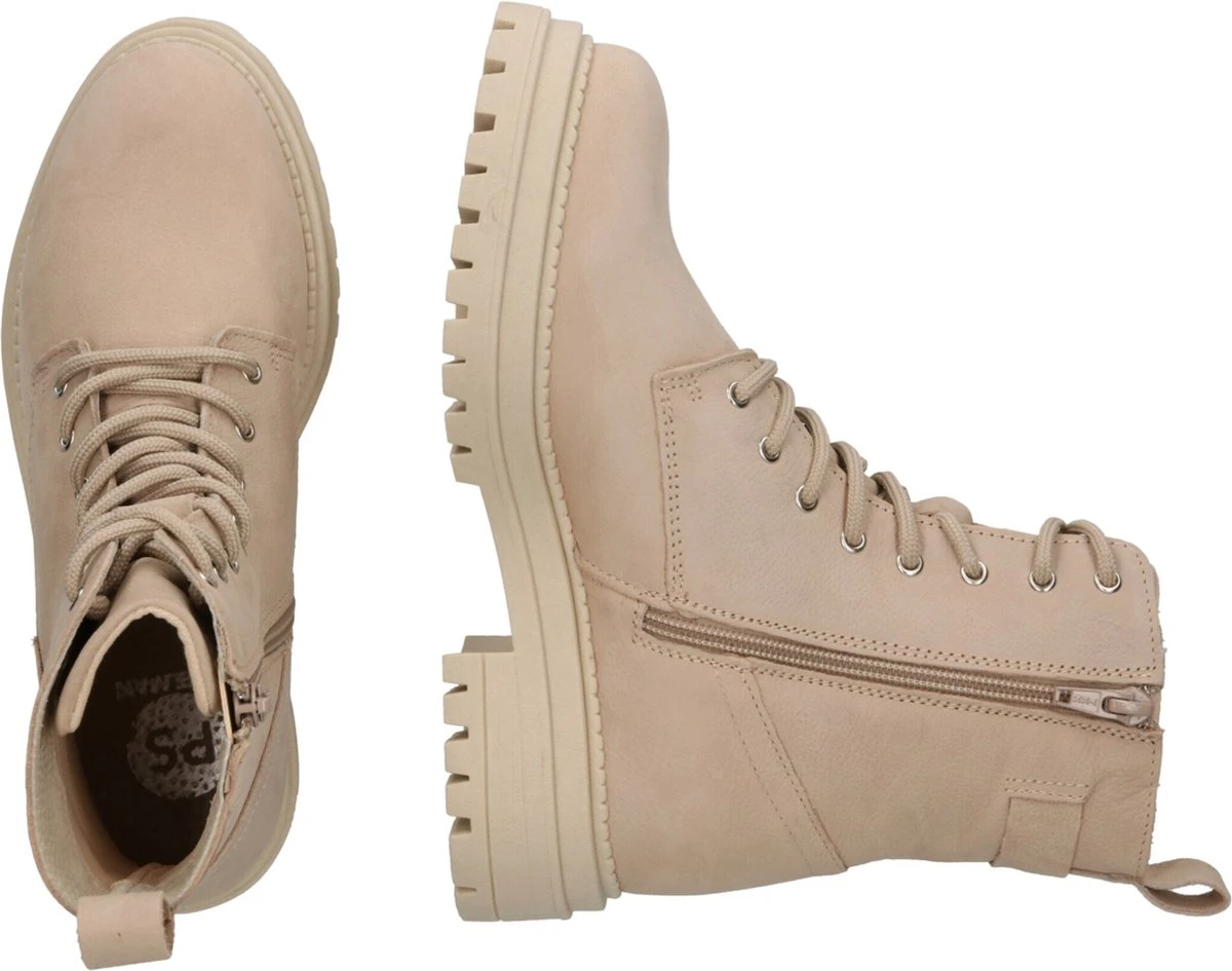 Deze ‘Luna’ veterboots voor dames van PS Poelman heeft een bovenwerk van nubuck in de kleur licht beige. Het model is voorzien van een veter- en ritssluiting aan de binnenkant, heeft een voering van textiel, een vast leren voetbed. Deze stoere laarsjes hebben een trendy look en passen helemaal in het modebeeld van nu. Super hip dus! Daarnaast zijn ze perfect te combineren met een lange jurk, rok of een stoere jeans! In 2015 werd het label PS Poelman in het leven geroepen. PS Poelman richt zich voornamelijk op een jonge doelgroep en reageert razendsnel op nieuwe trends. Trendy en comfortabel: dat zijn de schoenen van het hippe Nederlandse merk. Bovendien zijn de schoenen, sneakers en laarzen net even anders dan anders, zodat je voor iedere outfit een echte eyecatcher hebt.