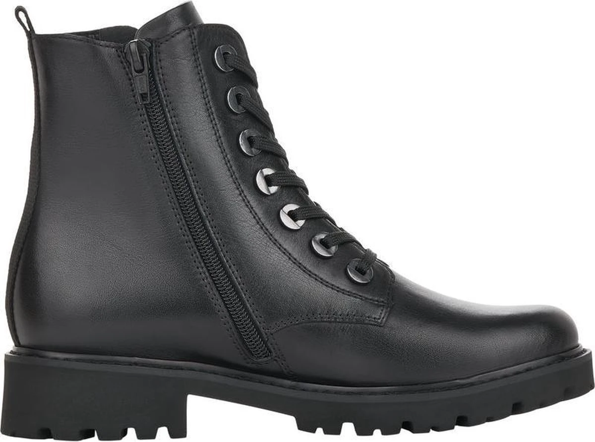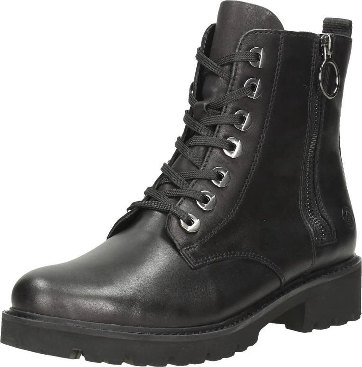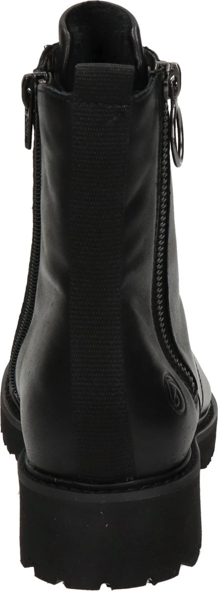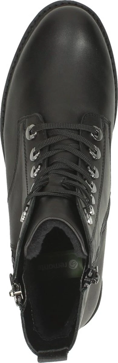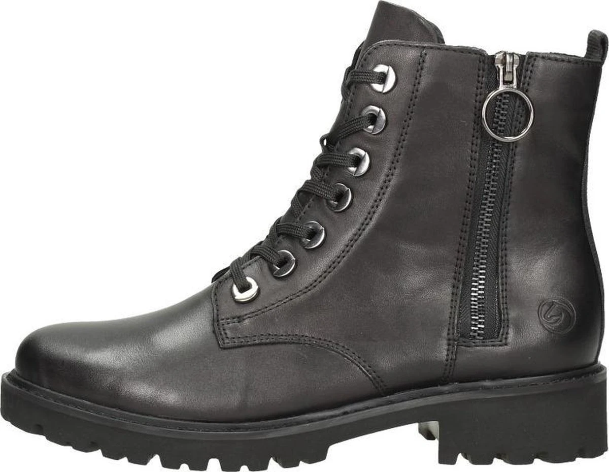 REMONTE artikel/model D8671-01 schwarz/black zijn modieuze zwarte damesschoenen stevige stoere veterboots, bikerboots of bottines of lace-up ankleboots van Remonte. Deze gemakkelijke Remonte hoge vrouwen bottines of boots zijn voorzien van zowel veters als een ritssluiting en hebben een ruime G-wijdte leest voor vrij brede voeten en een losse binnenzool en zijn dus ook geschikt voor steunzolen. Makkelijk aan en uit door de rits en de wijd regelbare schacht. Hoge kwaliteit voor een zachte prijs.