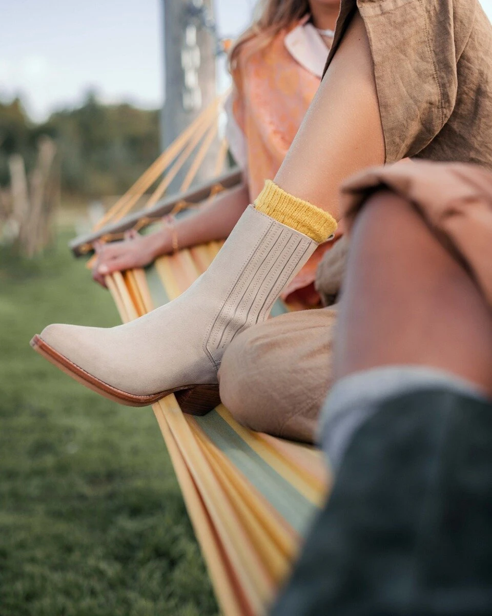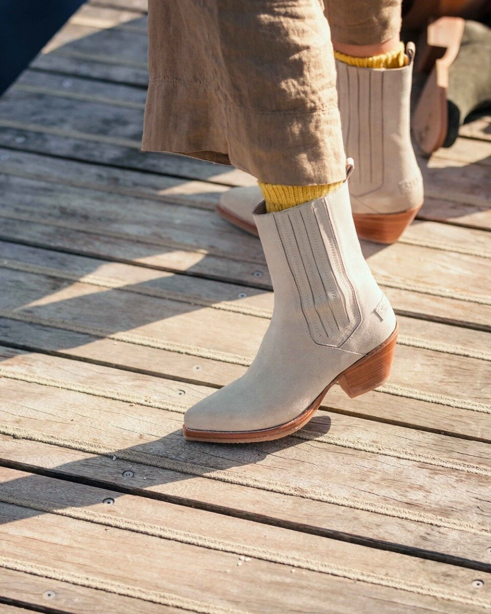 Het streven van het Amsterdamse merk Shabbies is dat jij je met elke stap die je zet zelfverzekerder voelt. Dat doen ze door het gebruik van fijne materialen van hoge kwaliteit en een mooi design met een vrouwelijke touch. Dit enkellaarsje 182020350 is gemaakt van grijs suède en heeft ook een leren afwerking aan de elastieken inzet over de gehele schacht. Op de hiel bevindt zich een merklabel met reliëf opdruk. Aan de achterzijde bevindt zich ook nog een handig aantreklus. De voering is gemaakt van leer met een comfortabel en uitneembaar voetbed. De hak is 6,5 centimeter hoog en is afgewerkt met een kunststof haktip en de loopzool is voorzien van een rubberen loopzool met een fijn maar gripvast profiel. De schachthoogte is 18 centimeter. Een stoer en fijn laarsje om onder vele outfits te combineren!