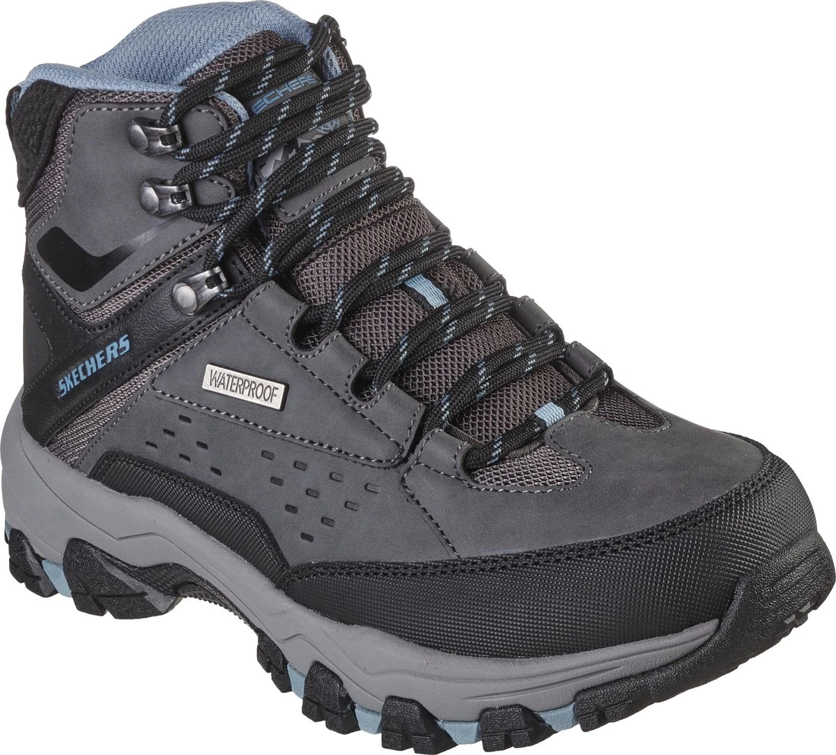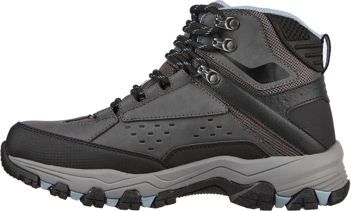 Geen enkel terrein is onbegaanbaar met de SKECHERS Selmen – My Turf dames boots. Relaxed Fit. Gecombineerde, waterbestendige upper van leer en mesh met veters in een stoere, hoge laars. Air-Cooled Memory Foam binnenzool.