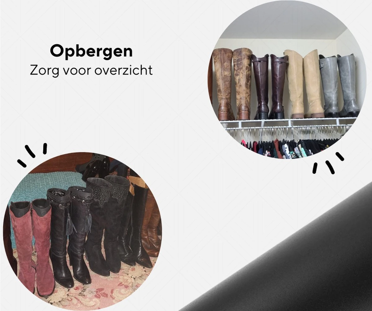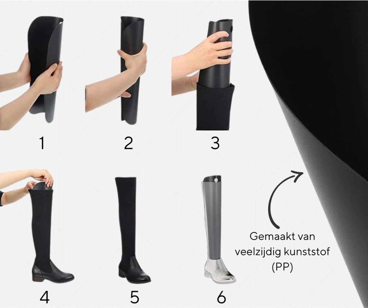 Je kunt de laarzenspanner in de laars oprollen, dit zorgt voor voldoende spanning om je laarzen te vullen en in goede vorm te houden. Met het handvat aan de bovenkant kun je de laarzenspanners er gemakkelijk uit halen. Met de laarzenspanner zorg je voor overzicht in je kledingkast.