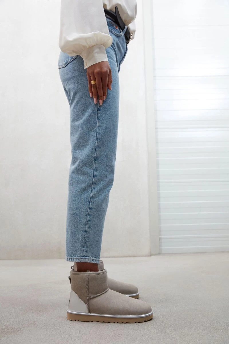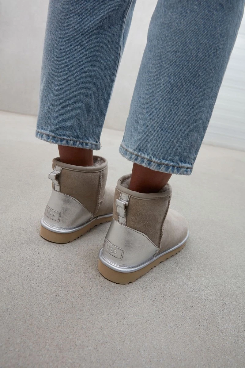 Dameslaars model classic mini shine in de kleur zand van UGG.