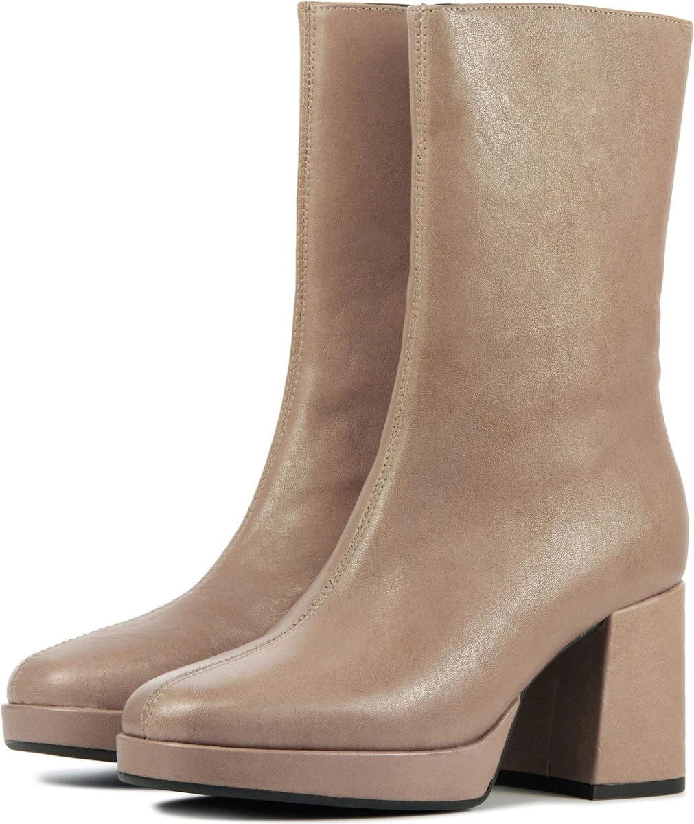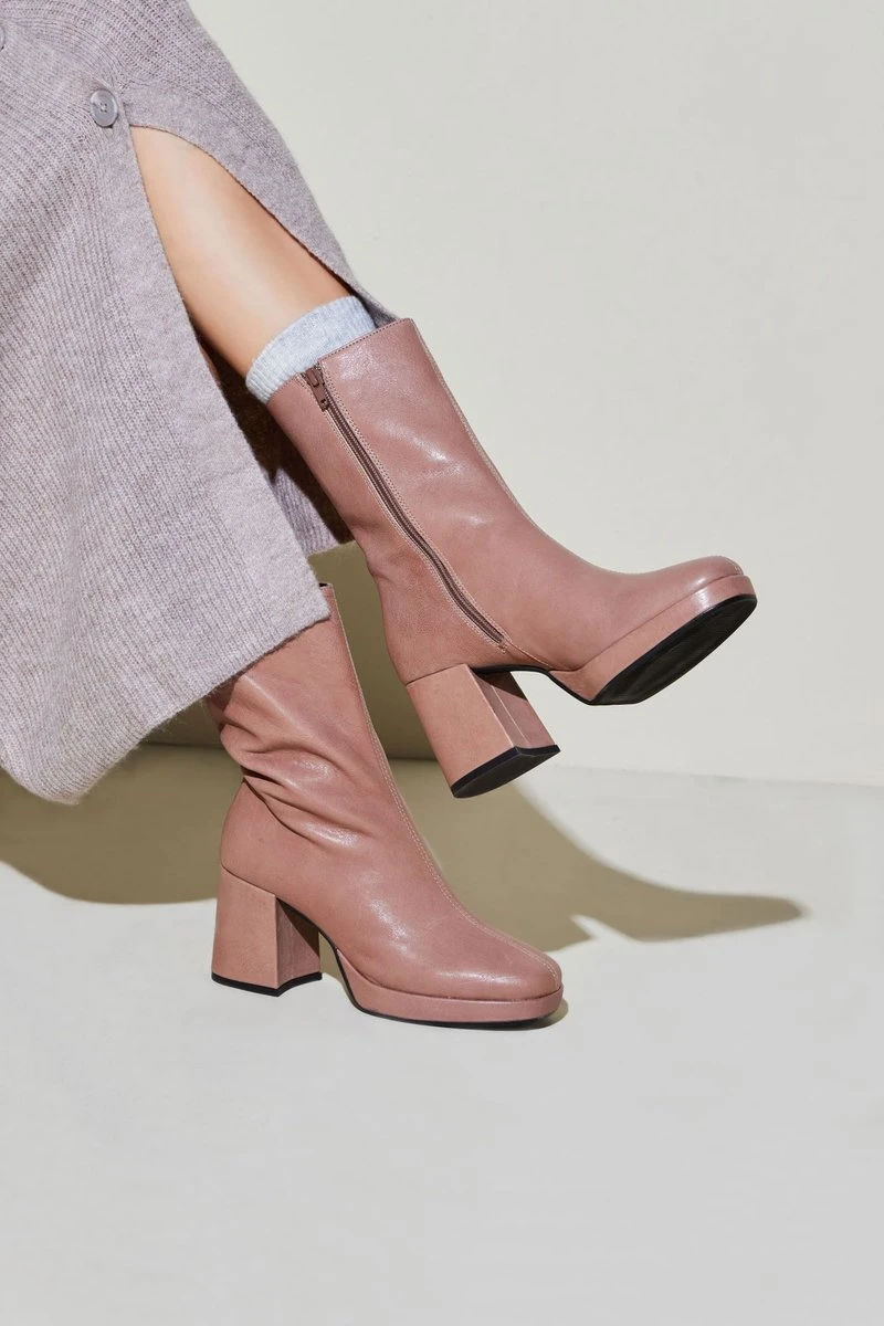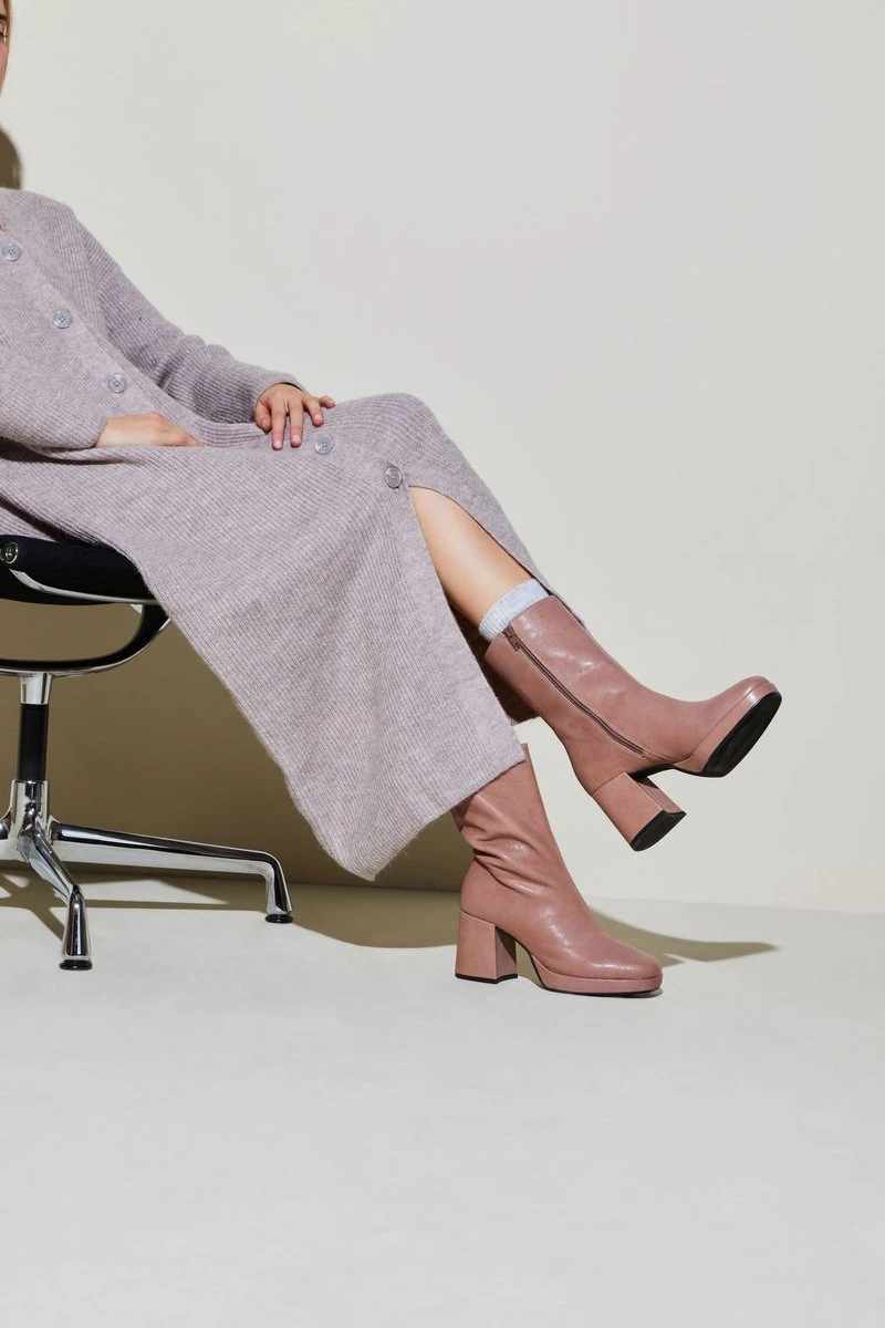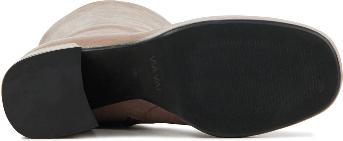 Halfhoge laars voor dames van het merk VIA VAI. Deze laars met rechte neus is uitgevoerd in roze leer. De binnenkant van de schacht bevat een rits om het aan- en uittrekken te versoepelen. De binnenzijde is uitgevoerd in leer en een stevig contrefort draagt bij aan het loopgemak. De laars heeft een verhoogde zool en een hak van circa 6 cm.