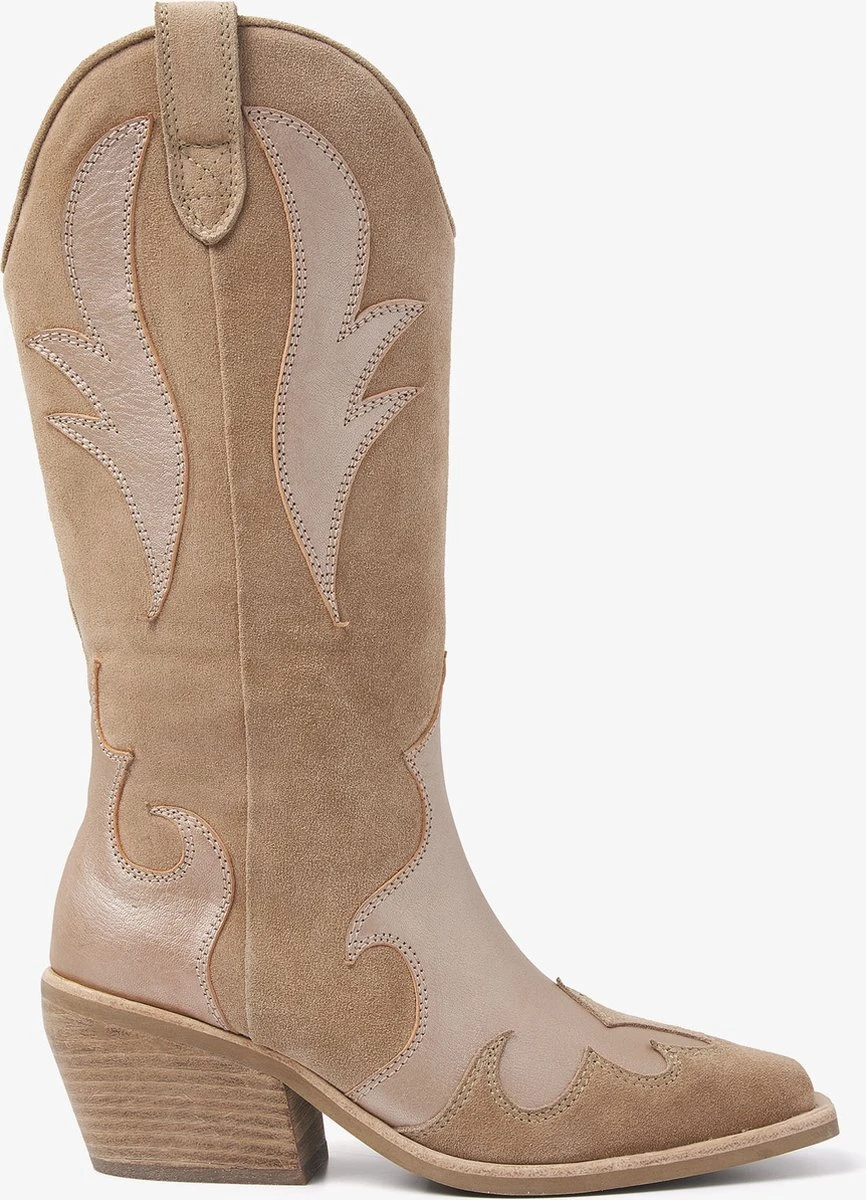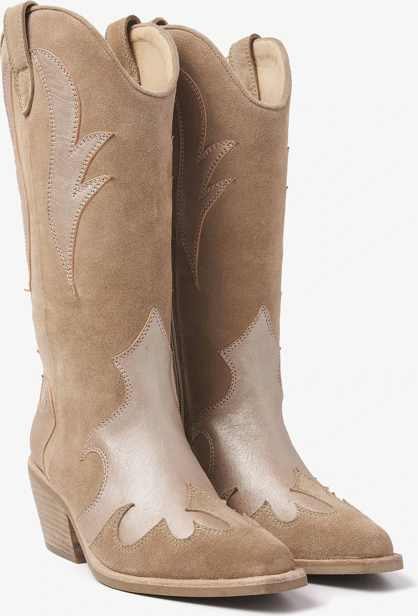 Classy en tijdloos met een western touch. We hebben het natuurlijk over Eveline River! Deze suède cowboyboot mag niet ontbreken in jouw garderobe. Er zijn eindeloos veel manieren om deze boot te stylen; stoer en vrouwelijk, Eveline River heeft het allemaal. De schuin aflopende blokhak zorgt ervoor dat jij de hele dag op deze laarzen kan lopen. De carré neus en details op de zijkant van de schoen geven de beige hoge laarzen het echte western gevoel. Need we say more?
