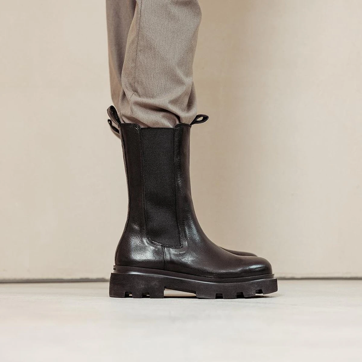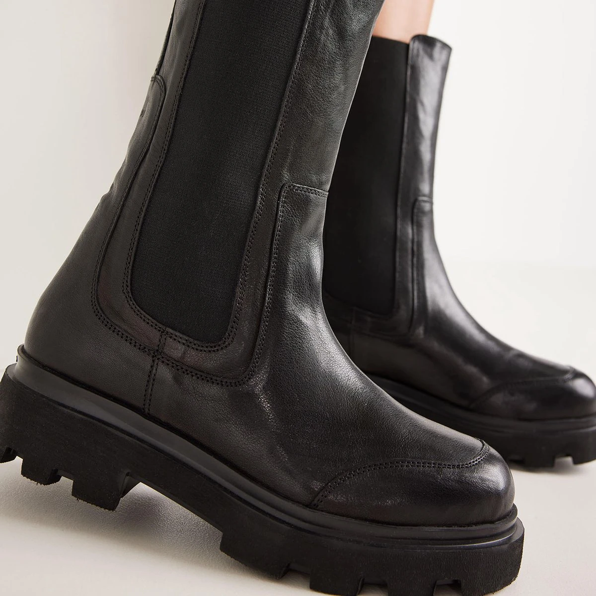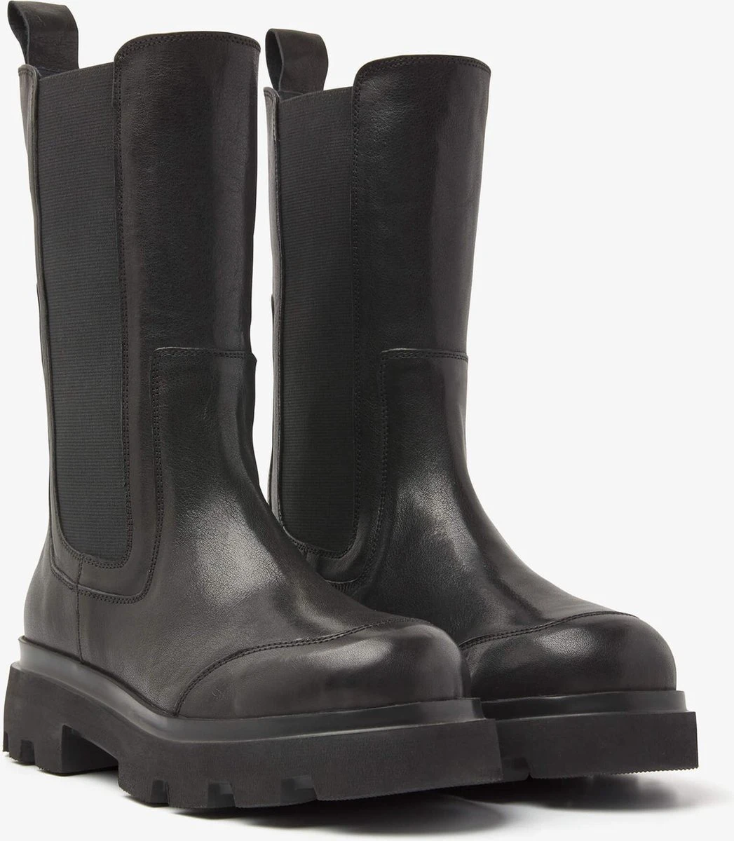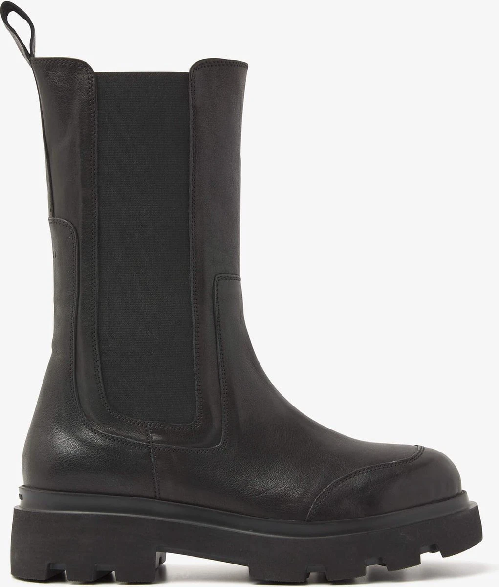 The chelsea boots love story continues… Ook dit seizoen hebben we een aantal mooie halfhoge chelsea boots met plateauzool ontwikkeld. De Livia Britt heeft een simplistisch design met enkele subtiele details. De stiksels op de neus zijn een knipoog naar de regenboots trend. De plateauzool met inkepingen geeft deze zwarte chelsea boot een extra stoere look. Bovendien trek je deze laarzen super makkelijk aan, namelijk door de elastische inzet aan de zijkanten en het aantreklusje op de schacht.
