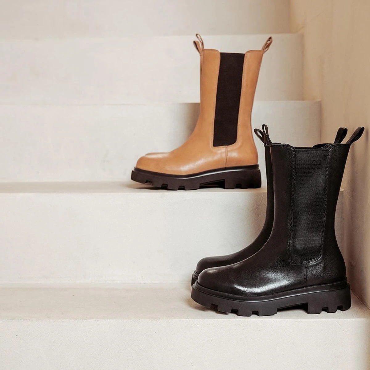 How to wear? Deze veelzijdige VIA VAI boots kun je combineren met bijna iedere outfit. Draag ze onder een jeans voor een basic look. Ook onder een lange rok komen deze zwarte chelsea boots met plateauzool heel goed tot hun recht. Deze fashion musthave mag zeker niet aan jouw garderobe ontbreken!