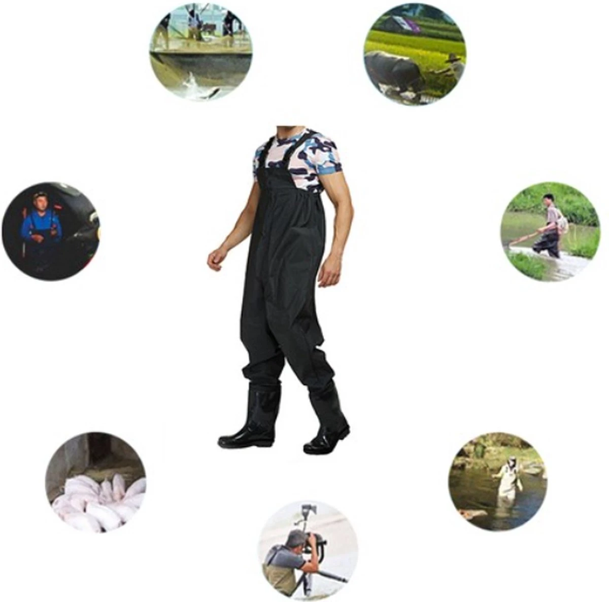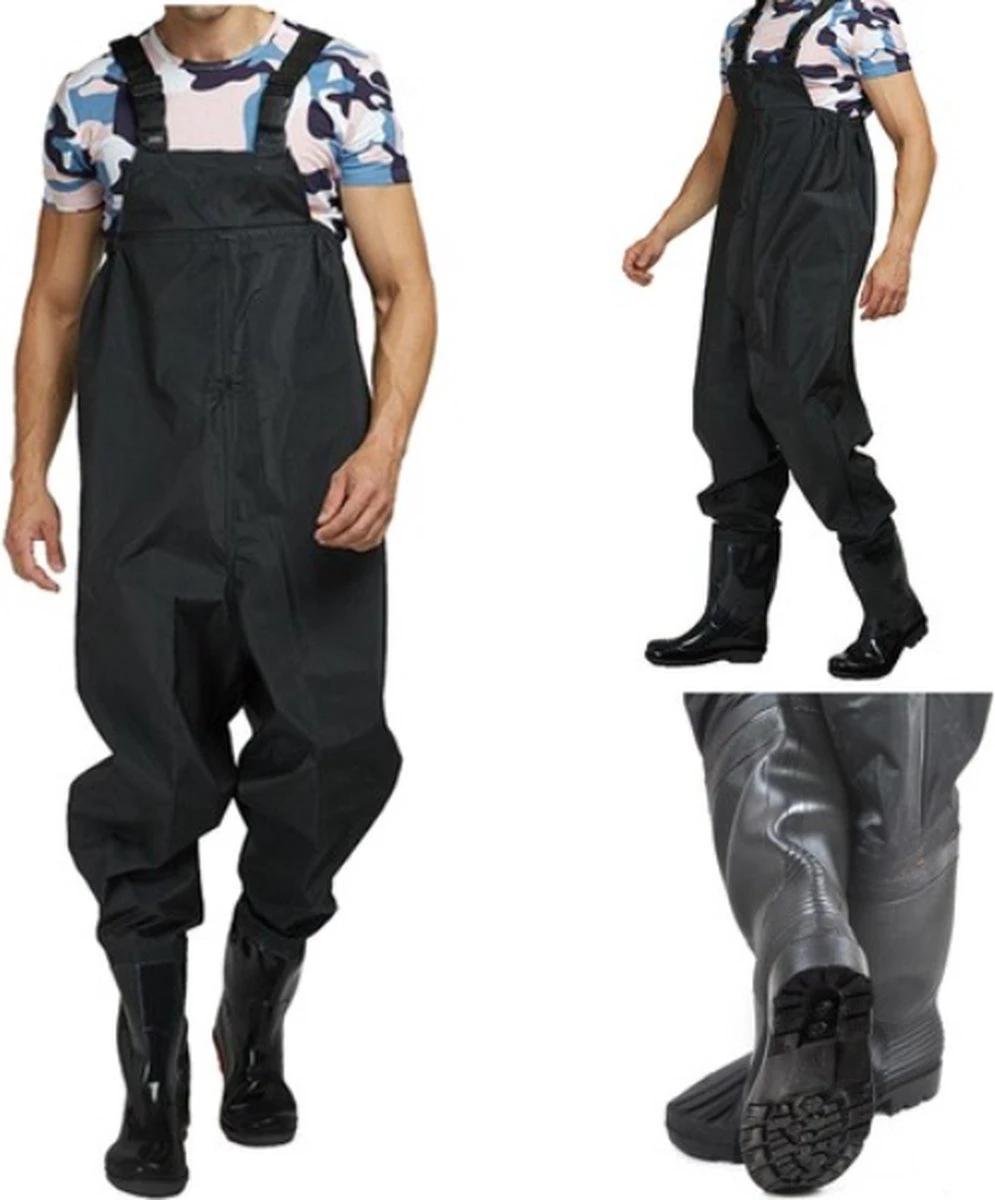 Dit waadpak is ontzettend gebruiksvriendelijk en van hoge kwaliteit. De waterdichte broek is gemakkelijk over de normale kleding aan te trekken. Het PVC pak is uitgerust met hoge kwaliteit rubberen lieslaarzen met een stevige anti-slip zool. De eenvoudig verstelbare schouderbanden zorgen ervoor dat de broek naar eigen wens verstelbaar is. De maat van het pak doelt op de schoenmaat van de laarzen, het waadpak is een one-size-fitt-all.